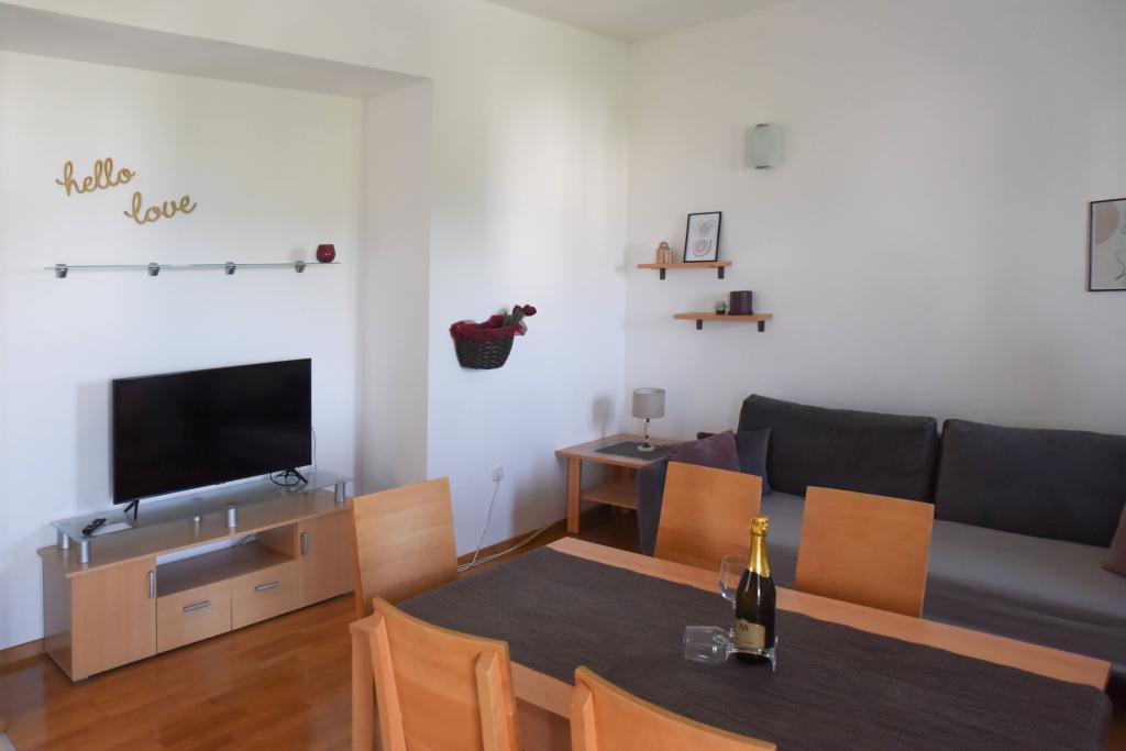 We highly recommend it to everyone because the accommodation met all our expectations. The hosts are excellent, everything is neat and clean. The apartment has everything you need for a longer stay. A minute to the beach, a vacation for the soul and body. The place itself is beautiful, neat, and the sea is clean. We were with children and a dog who immediately got used to the new environment, and the hosts welcomed us kindly.