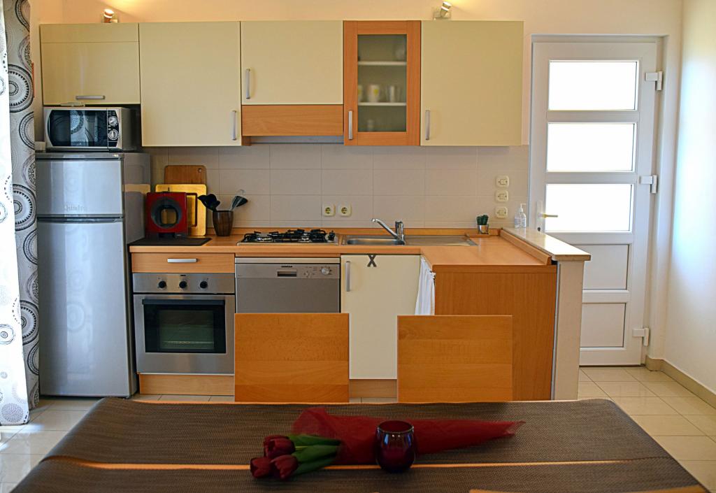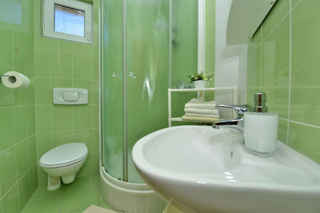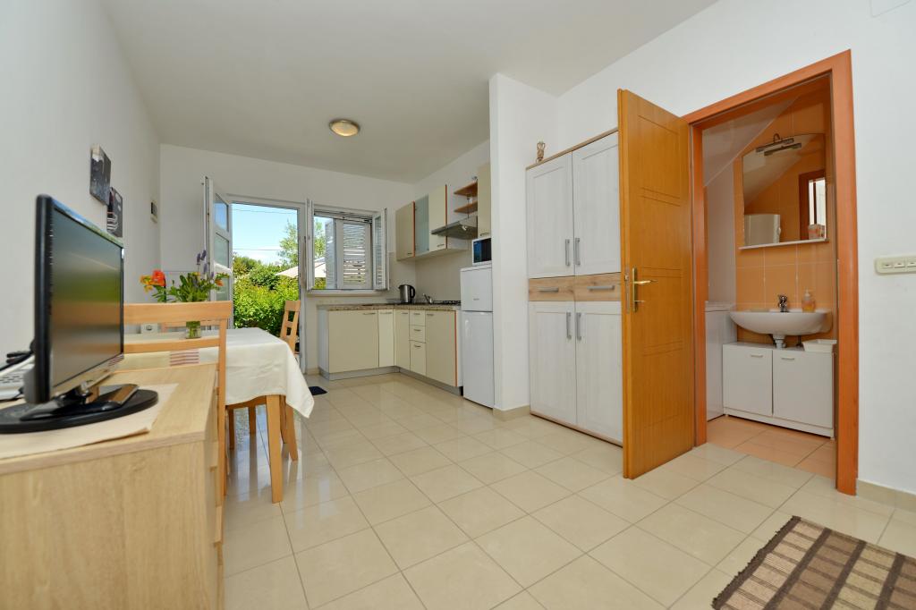 Everything is as in the pictures, the apartment is well equipped, neat and clean, nice terrace as well as the whole yard with lots of greenery and shade. The pool is excellent, well maintained, the children loved it. Wonderful hosts always available and very kind. The beach is a 1-minute walk away, stone. Because of the children, we went to a slightly further beach, which is sandy. All recommendations! We will surely come back again.