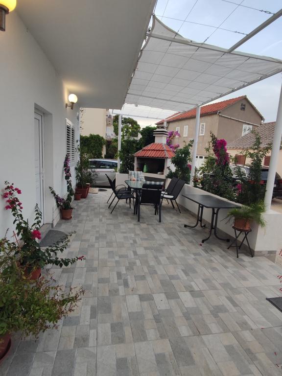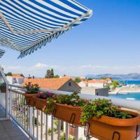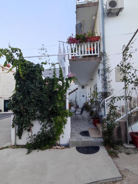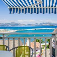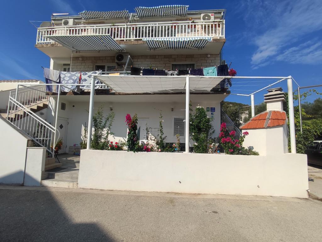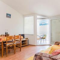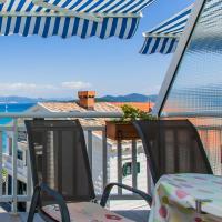 The apartment consists of a bedroom (in which there is a double bed 160x200 and a single bed 90x200, wardrobe), living room with kitchen. The kitchen is equipped with all necessary cooking utensils, cooking utensils, cutlery, plates, kettle, coffee maker, microwave, stove with oven, refrigerator with freezer. The living room has a dining table with chairs, sofa bed, air conditioning, TV. The bathroom contains a shower, toilet, cabinet with a mirror in which there is a hair dryer. From the living room there is an exit to the balcony with a beautiful sea view. There is a table and chairs on the balcony. The house is second row to the sea, 3 minutes walk from the center, 5 minutes walk from the beach.