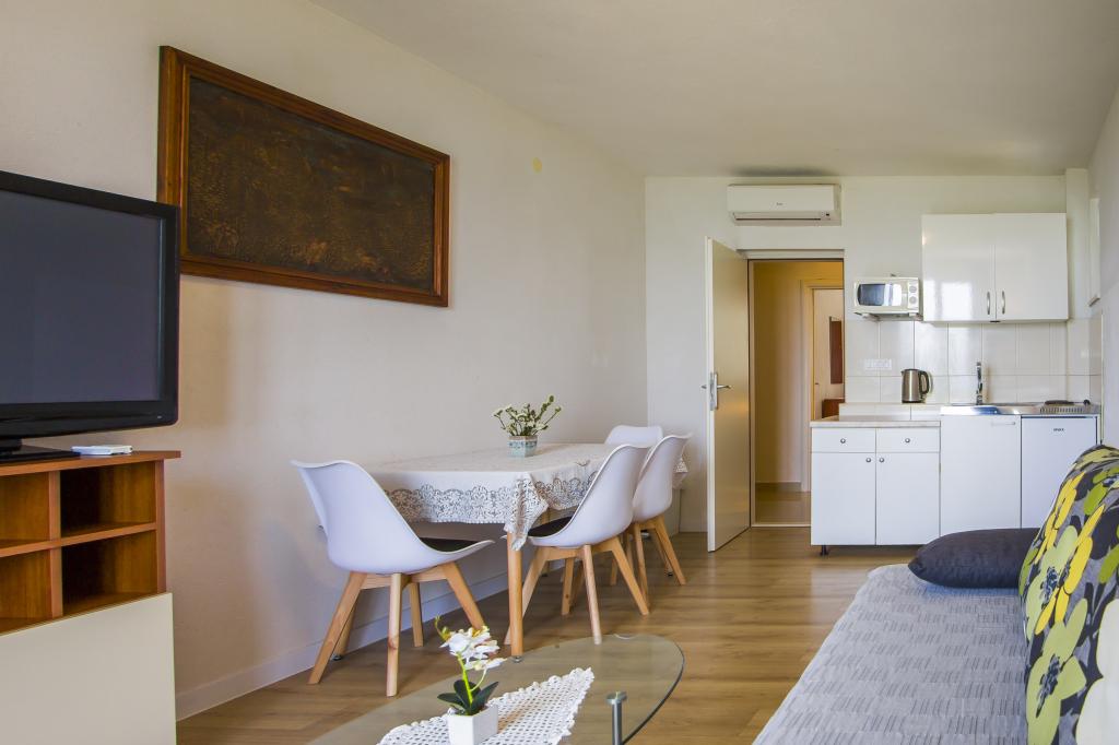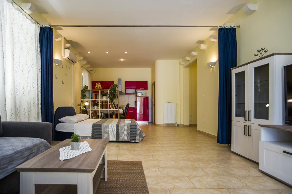 We stayed in the apartment studio + 2 on the ground floor. The apartment is really big, tidy and the terrace is great. Proximity to the beach 10 steps, beautiful garden. We were delighted. The owners are extremely kind people. The whole week's stay was perfect.