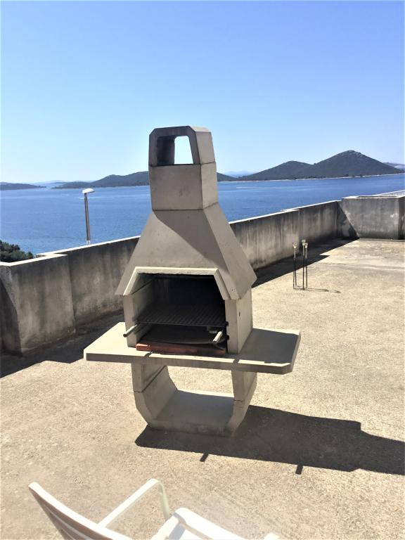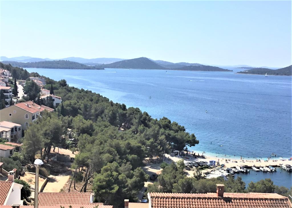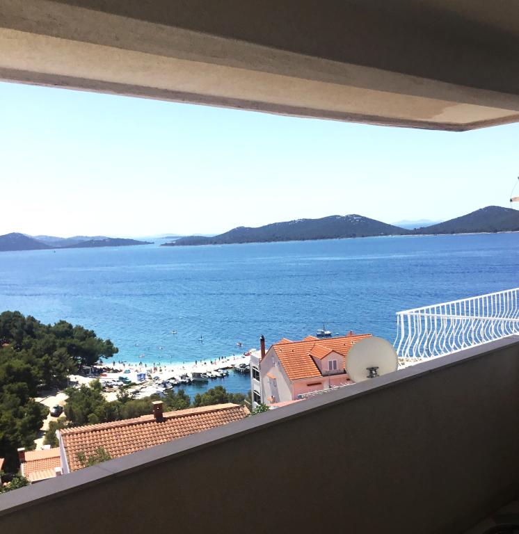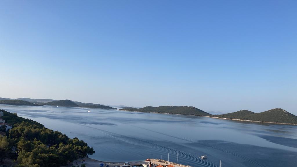 The PERICA facility is located in the 3rd row of the settlement built in the Dolaška draga bay of the town of Drage, 100 m away from the sea and the beach, which is bordered by a dense pine forest with a promenade. Due to its dominant position, the facility offers a unique panoramic view of the settlement, beaches, harbor, nearby islands and the Kornati archipelago. The facility consists of a garage, a panoramic terrace on the 1st floor and two apartments on the 2nd and 3rd floors. Only the apartment on the 2nd floor is rented, which allows guests to relax in complete privacy while the hosts are at their disposal for all inquiries and needs. The apartment is air-conditioned, has two bedrooms with beds 180 and 140 cm wide and a 110 cm wide sofa as an extra bed, and is well equipped for a comfortable stay (SAT/TV, flat wireless internet, electric hob, microwave, 20 l refrigerator with freezer, dishes, dishwasher, etc.). Guests have access to 1 parking/garage space for a car and unlimited use of the panoramic terrace (80 m2) with a barbecue.