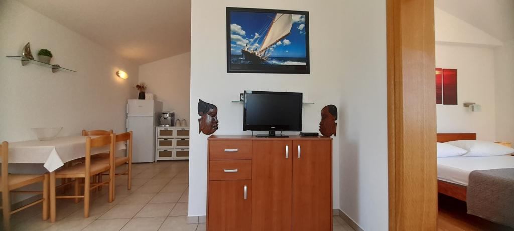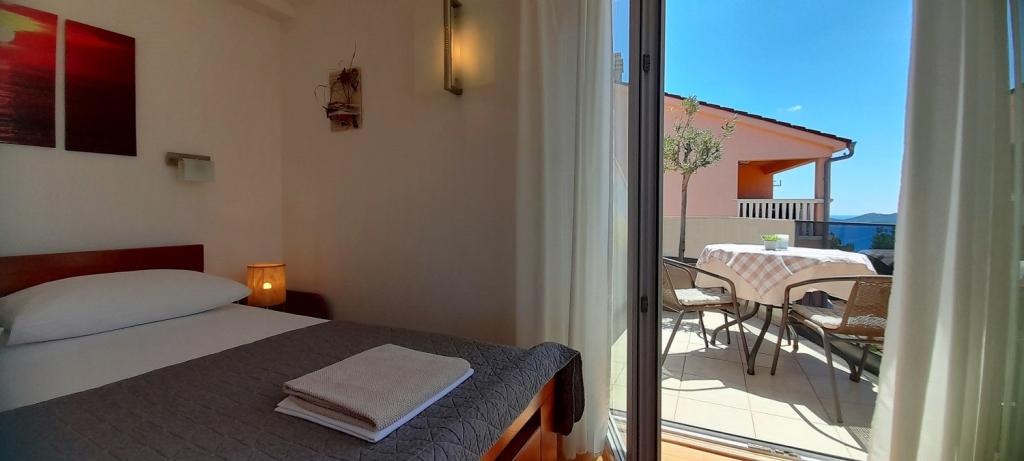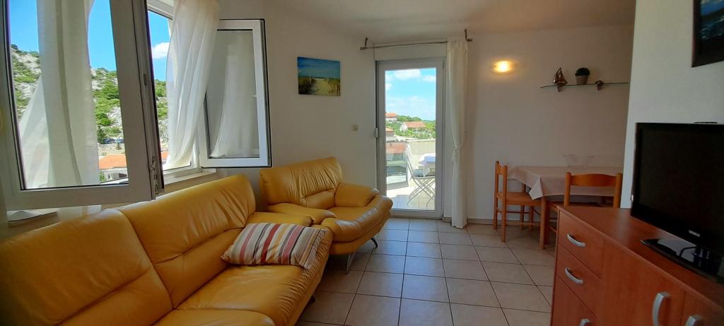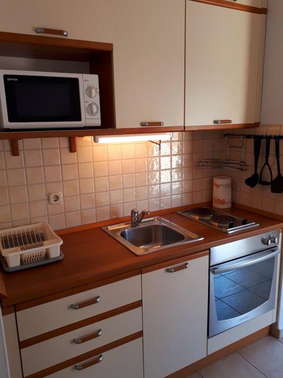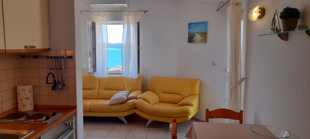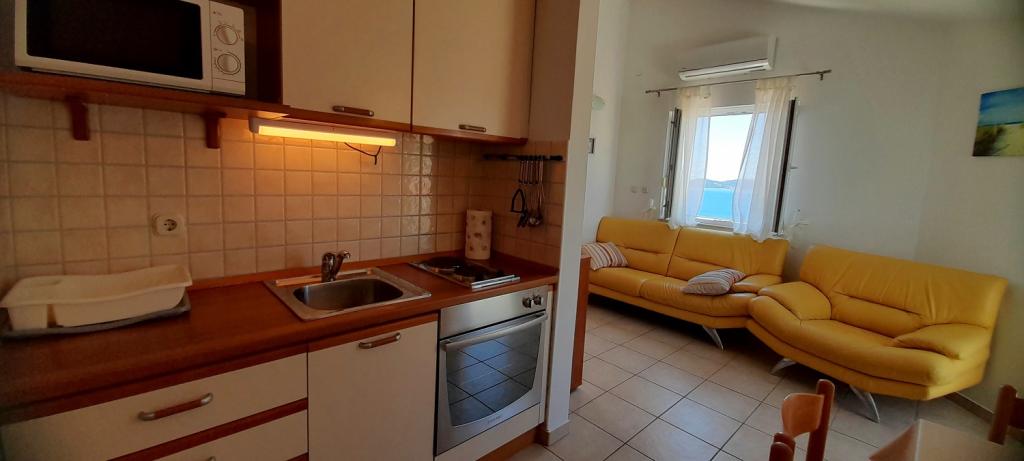 Apartment Sea View is located in the town of Drage, in the Dolaška draga bay, where there is a large pebble beach and countless small stone-paved beaches. Guests also have at their disposal a wonderful "lungo mare" promenade, a children's park and several cozy cafes. The apartment is located on the third floor of a small residential building and offers a wonderful and unique view of the sea. It is a 5-minute walk from the beach. The apartment has two bedrooms, a bathroom, a kitchen with a living room and three balconies, and guests have at their disposal two air conditioners, WiFi flat Internet, secured parking space, washing machine, coffee machine...