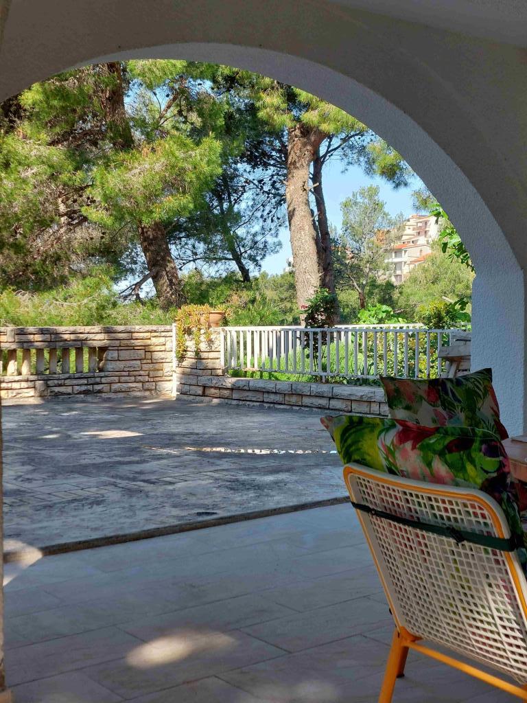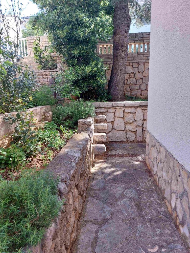 Enjoy our completely newly renovated apartment in the shade of the terrace overlooking the clear sea! The apartment is located on the ground floor of the villa and is surrounded by a large, shady courtyard in the first row to the sea. Spend the afternoon heat in our fragrant garden sipping cold cocktails, waiting for the most beautiful sunset! With us, everything is at hand - a drink at the nearby beach bar, dinner at the pizzeria next door, all kinds of activities on the beach, reading a book in the shade of old pine trees by the sea, a children's playground in the shade, a lighted promenade by the sea. Don't worry about parking - it's provided for you in the yard. As we are big animal lovers, your pets are welcome too!