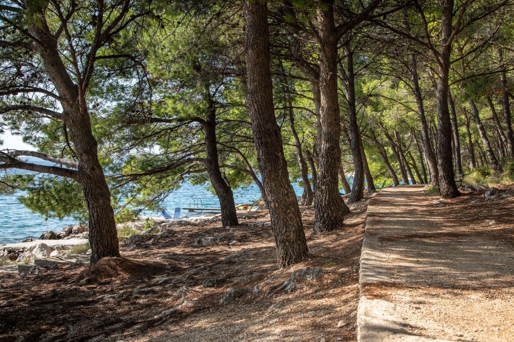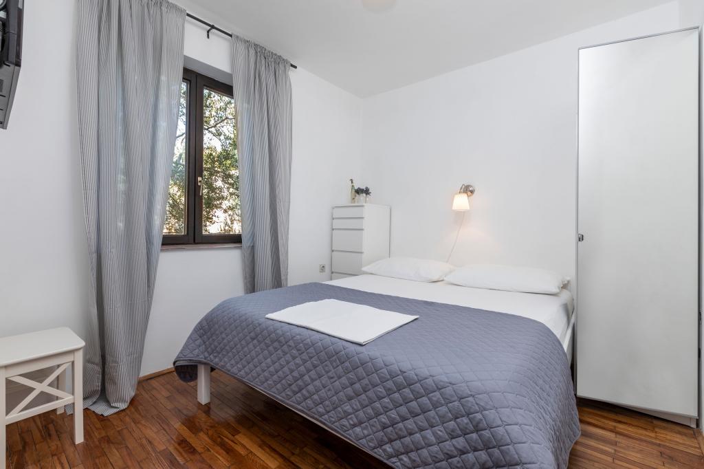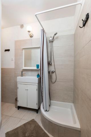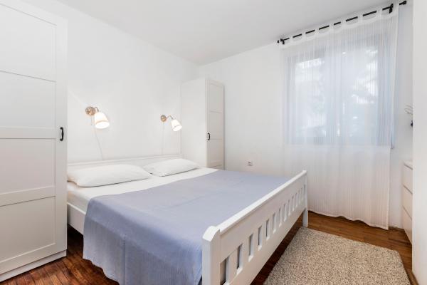 Fully equipped apartments in a beautiful location with a sea view in a house surrounded by greenery. The facility is 150 m from the sea and the beach, which is surrounded by a dense pine forest. An illuminated promenade runs through the pine forest along the sea. Each apartment has its own kitchen and bathroom and 1-2 bedrooms, depending on the apartment. The kitchen has all the necessary appliances and dishes. The apartment has an oven or microwave (depending on the apartment). The rooms have comfortable beds, and bed linen and towels are provided in the bathroom. Apartment A4 has a spacious terrace with a beautiful sea view and the terrace is an integral part of the apartment. Apartment A4+1 has a covered private terrace next to the apartment, surrounded by greenery. The studio apartment has its own private terrace next to the apartment, separated from the passage, with a beautiful sea view. The floor plan of each accommodation unit is attached to the pictures so you can see the size and layout of the rooms. Each apartment has its own parking space.