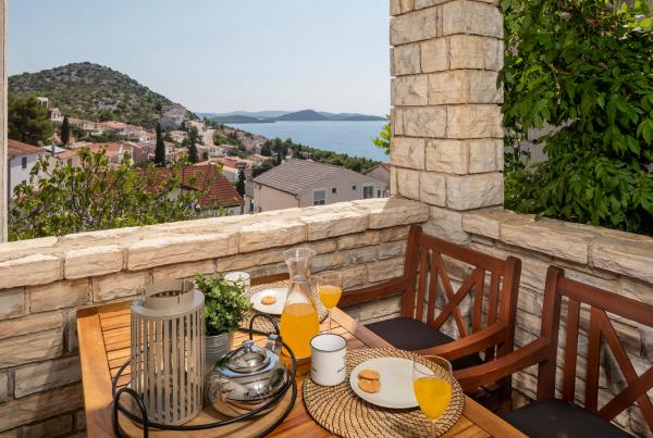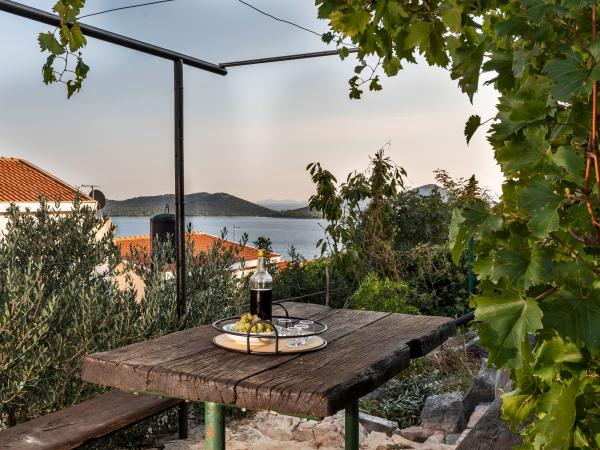The house itself is fantastic. Stone surrounded by olives, laurel, figs and flowers. It has a corner with a barbecue, while even chickens hide in the back of the house. The apartment has a wonderful view and everything you need for a pleasant vacation. Friendly host. The fastest way to get to the beach is by stairs. Two or three minutes and you are on the beach. It's a little more uphill. There is always a corner in the shade on the beach. There is a bakery and a small market nearby. We had a great time on vacation.