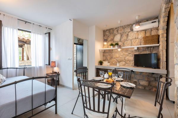 A beautiful stone house with a garden - fig trees, pomegranates, almonds next to tomatoes and watermelons. Everything clean and tidy. The owner polite and helpful. Takes care of every detail and order. The kitchen is equipped with everything including a toaster. Nice and quiet town. Perfect for families with children looking for peace and relaxation. I recommend!