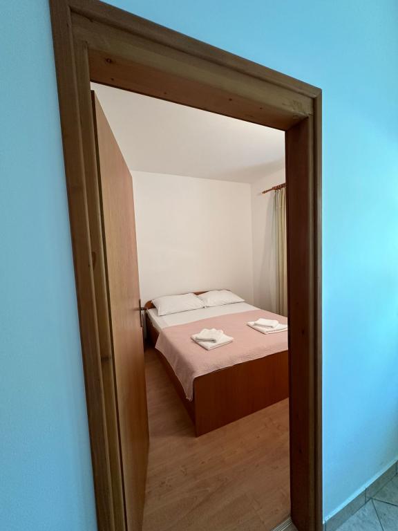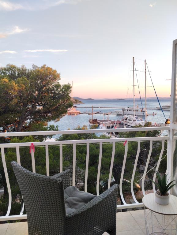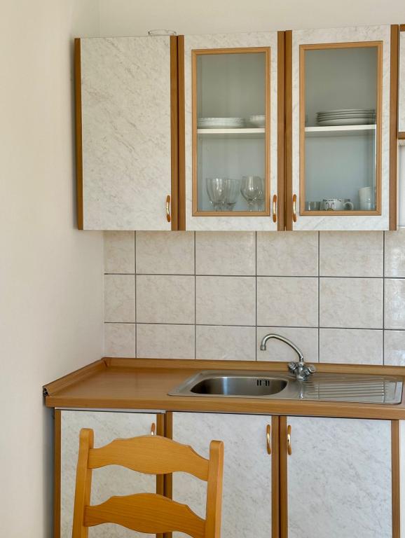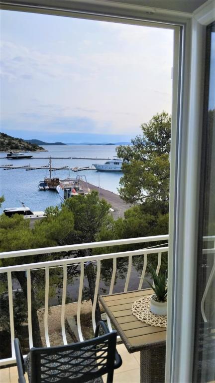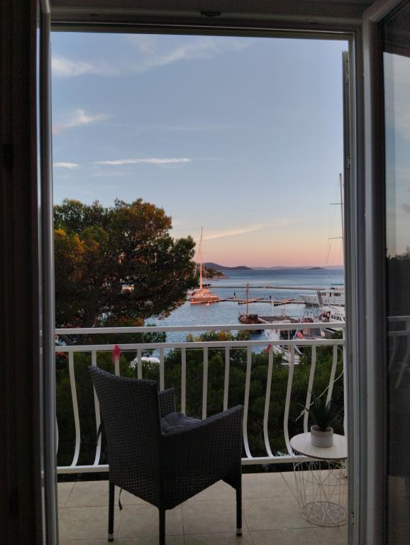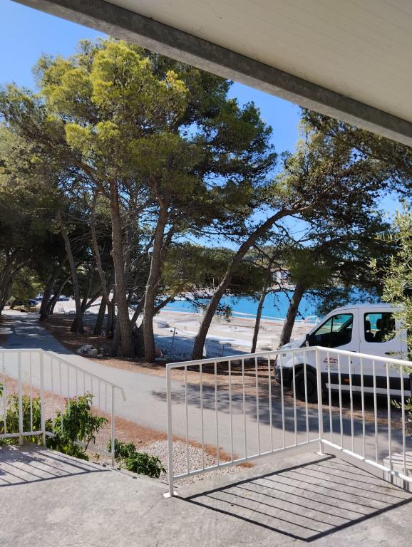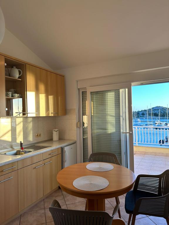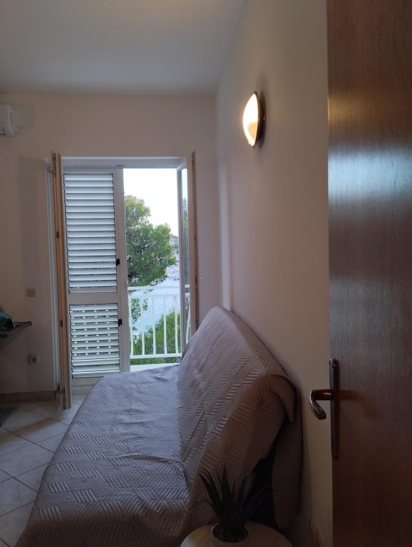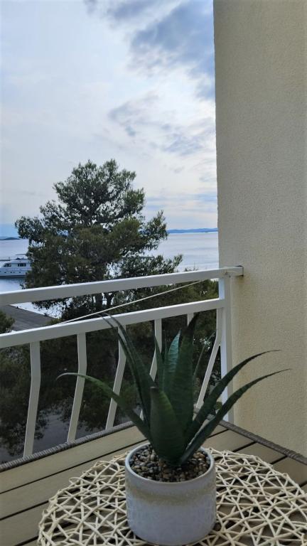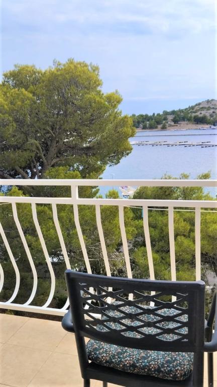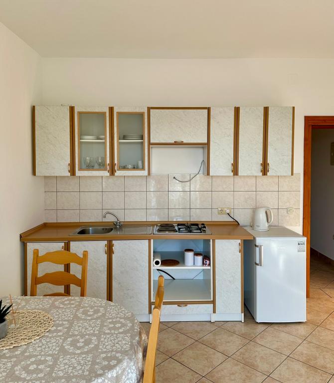 Peace and privacy – accommodation for adults only (max 2). Our accommodation is not suitable for children – both because of the wild beach nearby and because of the equipment of the apartment. Please send all inquiries exclusively via the contact form. The price list is up-to-date and correct. Apartments "Mustel" are located in Drage, 10 km from Biograd n/m, in the first row to the sea, next to the new Marina Drage. The nearest beach is natural, located in a pine forest (see pictures) and is just a few steps away from the accommodation, in the direction of Pakoštane. A promenade through the forest connects our facility with Pakoštane, providing peace and privacy in the shade of pine trees. Drage also offers other beaches, and the first public pebble beach (Plaža Porat) is located 800 m away, with a large parking lot, restaurant and bar. All apartments are equipped with a separate bedroom, kitchen, living room, bathroom, balcony/terrace, air conditioning, WiFi, bed linen and towels. Each apartment has one parking space