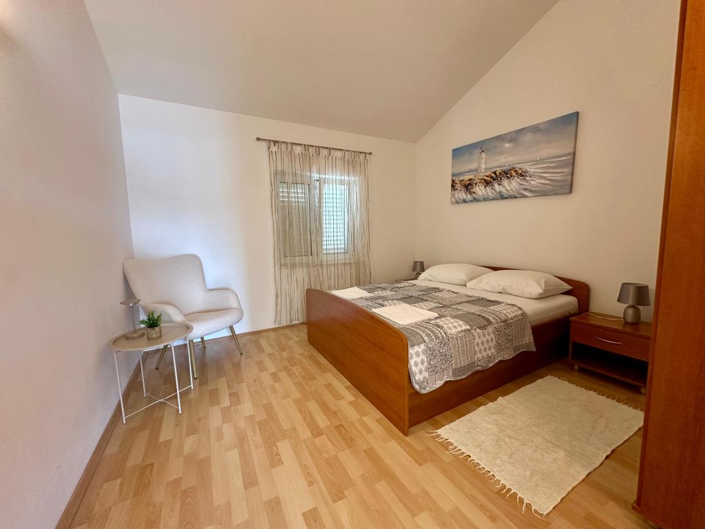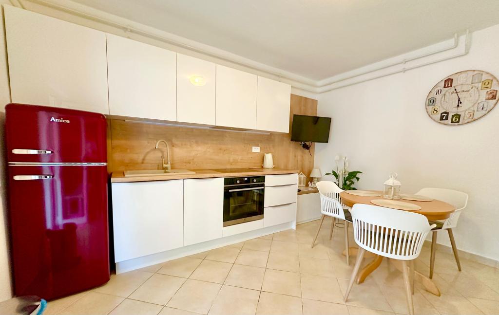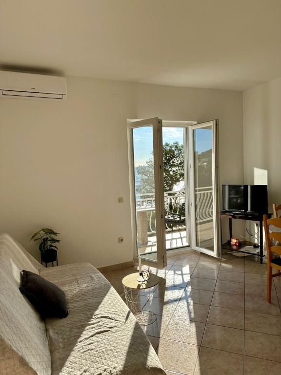 The apartment is located right on the coast and contains everything you need. A very quiet location, for those who like rocky beaches, this one is about 20 meters from the property. We definitely recommend this accommodation!!