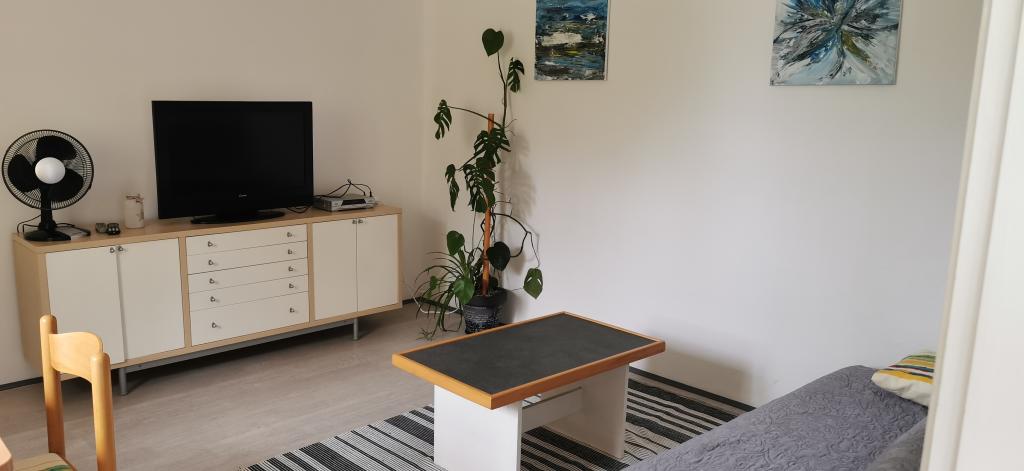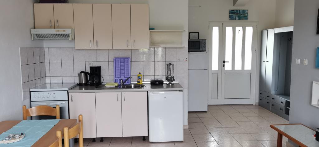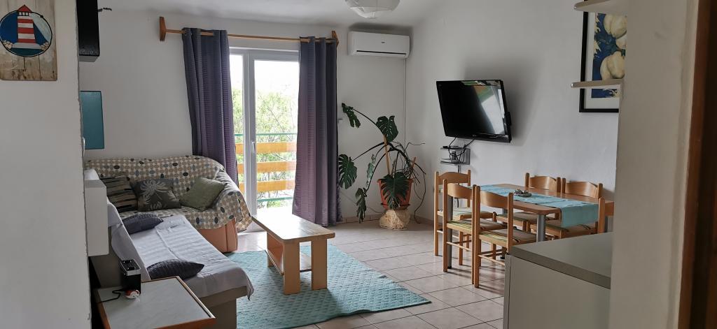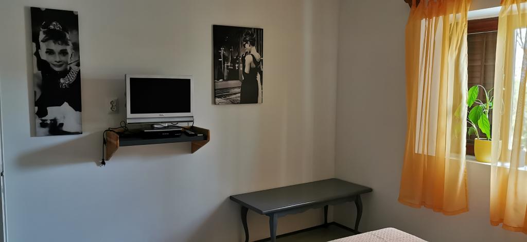 We were in a two bedroom apartment which is really big, the rooms are nice and comfortably furnished. The living room is spacious and includes a kitchen that meets the needs of a family of four. It's the same with the bathroom. We had a large terrace with a nice view. The landlady is pleasant and ready to show the beaches and their area. The house is located next to the highway, but it does not interfere with the rest and the sea atmosphere. All in all, we had a holiday full of peace. I highly recommend a visit.