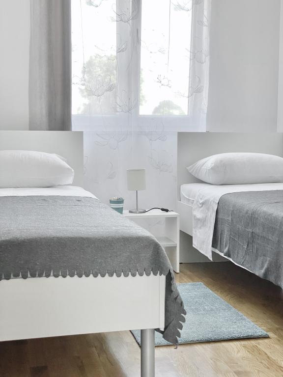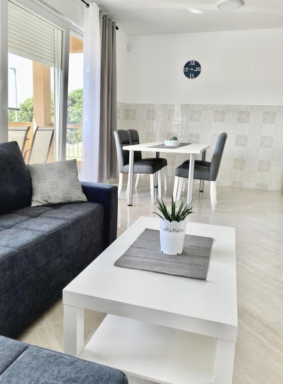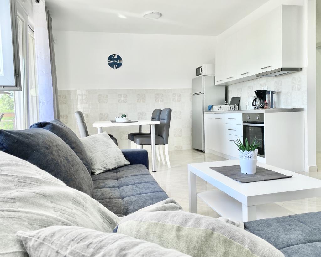 Apartments Stella are fully and modernly equipped apartments in a quiet part of town. In the immediate vicinity there is a shop, bakery, beach, restaurants and the highway. The proximity of Lake Vrana is ideal for lovers of fishing, cycling and birds. There are two other Croatian national parks in the area (Krka and Kornati). Each apartment consists of: living room (with sofa bed), kitchen with dining area, 1 bedroom with double bed, 1 bedroom with 2 single beds, bathroom with toilet and balcony. In the kitchen are available: kettle, coffee maker, microwave and ordinary oven, 2 cooking zones, refrigerator and all necessary utensils and cooking utensils. The bathroom has a washing machine and hairdryer. Upon request, we add a baby feeder, a baby cot (with bed linen) and a bed railing to the apartment. These extras are included in the basic price, you only need to check availability when booking.