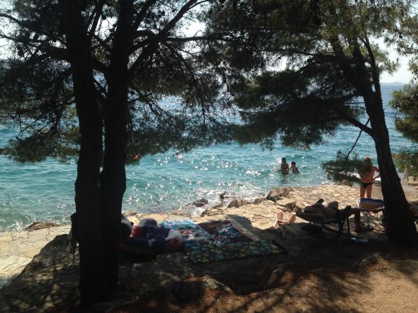 First, a thank you for welcoming hosts. Best hosts and a man you would not able to imagine (Friendliness, concreteness) We were very pleased, apartment was very nicely decorated, clean has a beautiful terrace with a beautiful view of the sea. The beaches are 50 meters away, clean and tastefully decorated. On the beach you can enjoy the sun and the shade, while you can enjoy the 2 bars or restaurants. I recommend it to all, especially those who like to spend their holidays peacefully! lp Blaz