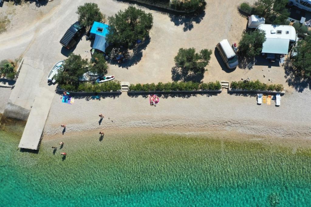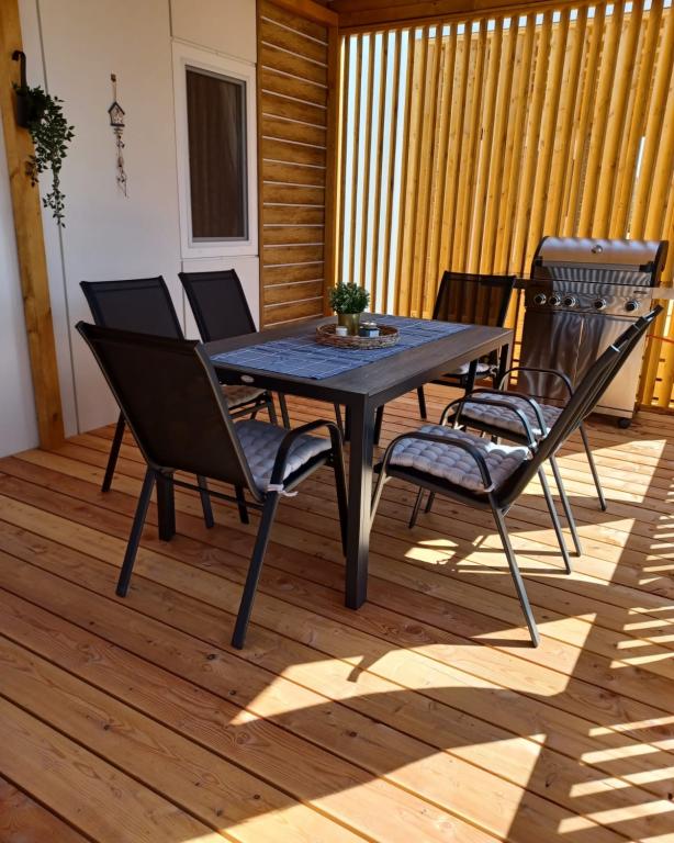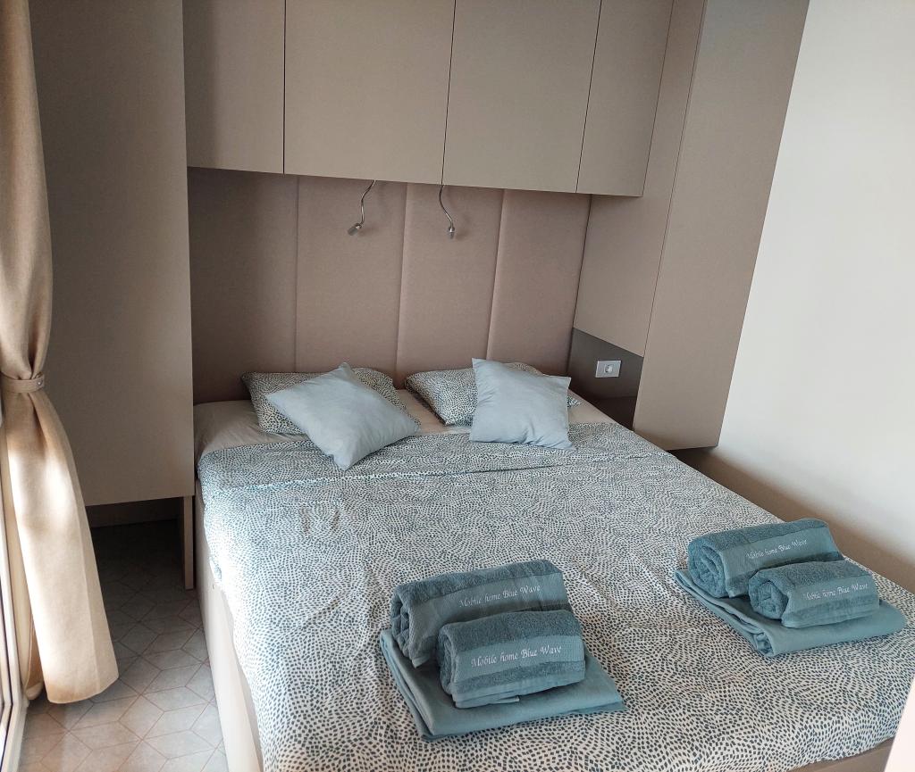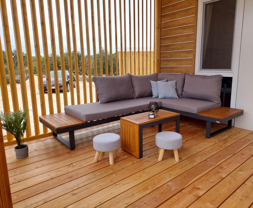 Blue Wave is a brand new house, which starts renting from 1 April 2023. The house is fully equipped and has a modern design, 32 m2 of beautifully used space. CONTENTS: Fully equipped kitchen (microwave oven, cooker, induction hob, toaster, dishwasher, stand mixer, blender, complete dishes, and small inverter) 1 Bedroom with double bed 160x200 1 Bedroom with 2 beds 90x200 Living room with three-seater sofa, sleeping dimensions 140x200 Dining area 2 Bathrooms fully equipped (shower, toilet, towels, hair dryer) Terrace fully equipped (furniture for relaxation, dining table, barbecue...) Solar shower Parking place Baby feeder Travel cot for babies