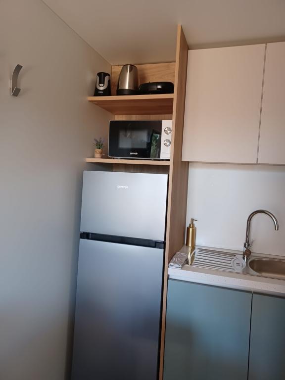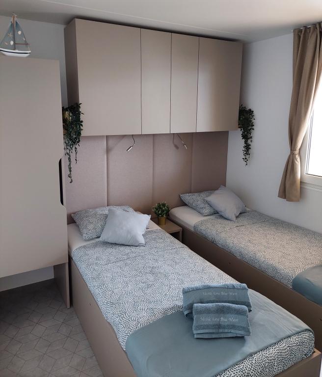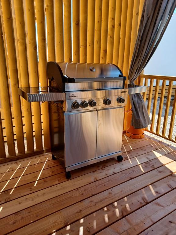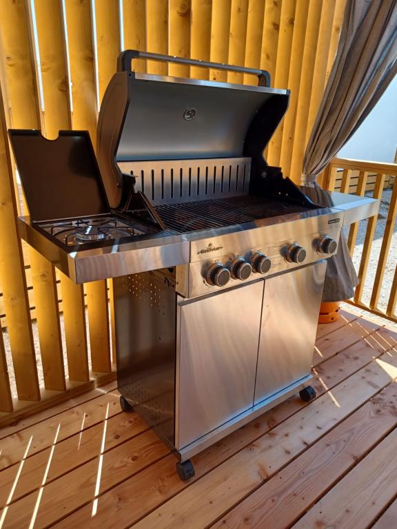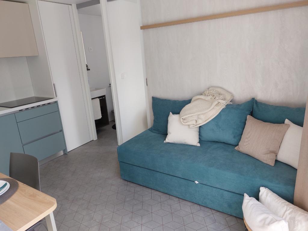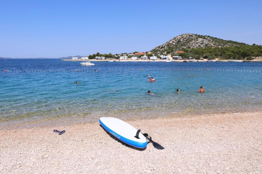 Blue Wave is a brand new house, which starts renting from 1 April 2023. The house is fully equipped and has a modern design, 32 m2 of beautifully used space. CONTENTS: Fully equipped kitchen (microwave oven, cooker, induction hob, toaster, dishwasher, stand mixer, blender, complete dishes, and small inverter) 1 Bedroom with double bed 160x200 1 Bedroom with 2 beds 90x200 Living room with three-seater sofa, sleeping dimensions 140x200 Dining area 2 Bathrooms fully equipped (shower, toilet, towels, hair dryer) Terrace fully equipped (furniture for relaxation, dining table, barbecue...) Solar shower Parking place Baby feeder Travel cot for babies