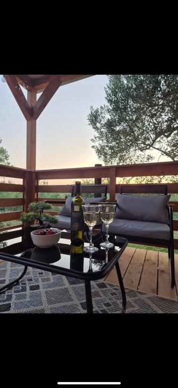 Olive Nest is a mobile home available from 2024. The house is fully equipped, with a modern design, measuring 32 m2 with a 32 m2 outdoor covered terrace. The house is equipped with a bedroom with a double bed, and a room with two single beds, also containing a pull-out bed for two people. Inside the accommodation there is a kitchen with a dining area, and a bathroom (toilet, shower, sink). The covered terrace provides an opportunity for all-day stay and relaxation. There is an outdoor dining table on the terrace. Come and experience a vacation in the heart of Dalmatia! ️- 1 room (double bed) - 2 rooms (two single beds) - pull-out bed for two people - portable cot for a child up to 2 years old -️ 1 bathroom (shower and sink) ️- large terrace 32m2, with a table for 6 people and a lounge area ️- Wi-Fi ️- TV ️- dishwasher ️- electric grill - outdoor shower ️- equipped kitchen - free parking - vacuum cleaner - hairdryer - washing machine