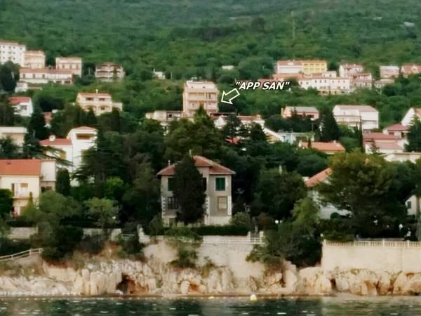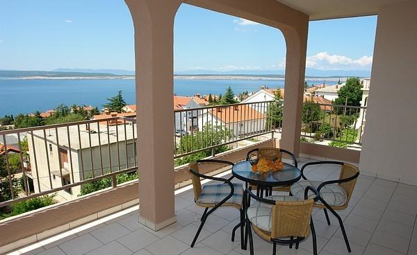 Apartments San are located in Dramalj, near Crikvenica. In the house there are three apartments with lovely views of the sea, on the island of Krk and the entire Kvarner. Each apartment has a large terrace, covered with a space with seating. Car parking is free and is located directly on the property. The apartments are located about 200 meters from the sea. In the courtyard there is a grill, and is available to all guests.