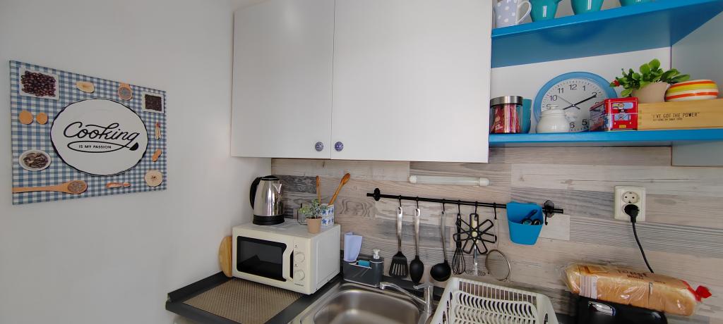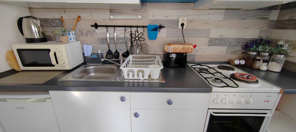 A welcome drink is included in the price, as are complete toiletries (towels, shampoo, toothpaste, toilet paper, hairdryer). The kitchen is fully equipped.