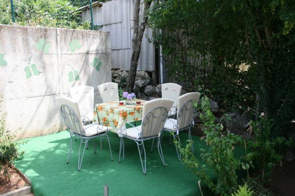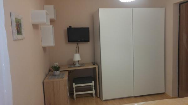 I would recommend staying in these apartments. Owners very nice, enjoyable and accommodating. Clean, neat room like after renovation. Kitchen equipped with everything you need - utensils, plates, cups, glasses, pots and pans to choose from, microwave, etc. Big bathroom with large and small towels, which owner Barbara (very nice woman, besides her husband as a nice man) changed in during our stay. You descend a shortcut to the beach at the house, immediately behind the house pizzeria where besides pizza they serve local specialties. A large terrace where there are sun loungers, table furniture, barbecue (in the shadow of grapes). The apartment in which we have a large balcony with table and chairs. I really recommend the apartments, because I saw all three and everyone is nice.