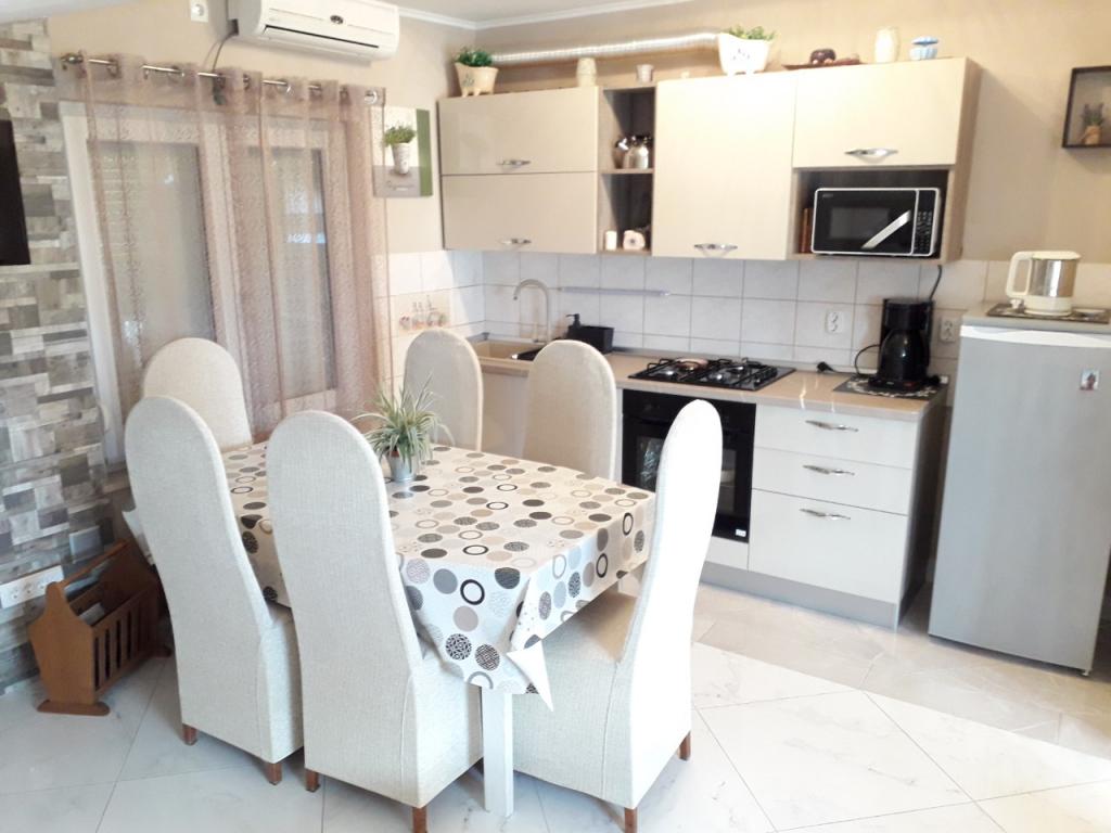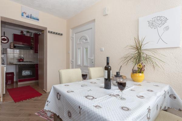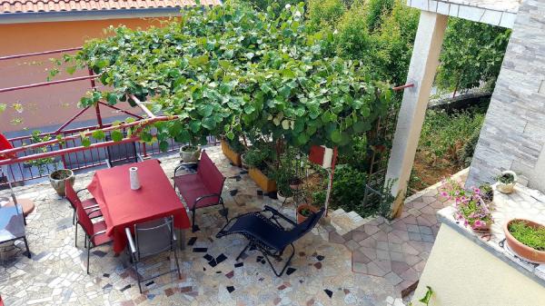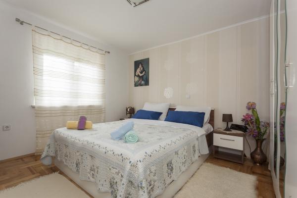 The apartment is located in the quiet place and you have about 10-15 minutes to walk to the sea. In the apartment you have 2 good decorated rooms with a double-beds and wardrobes. You also have a bathroom with a big shower, hairdrier, mirror etc. In the kitchen were a lot of utensilities, so you can cook everything what you want. We also had a place with a table on terrace with a sea view. The hosts Jasnica and her husband were very friendly and cooperativ. In the house lives very lovely small dog Maki as well. So we are really thankfull to Jasnica for good accomodation and some good tips.