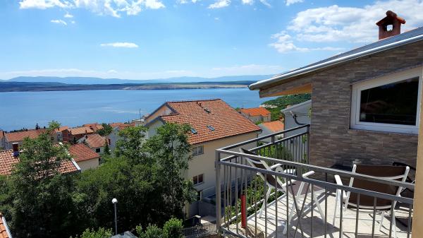 Dramalj is a small town, where their holidays can implement the peace and quiet, yet you are in the center of development has, City of Crikvenica, which in summer is full of tourists and events, from DRAMALJ is only 3 km.Auer attic apartment has 55m2 consisting of a living room with sofa bed, satellite TV, radio and air condition.Kitchen with dining area equipped with fridge and freezer, gas stove / electricity, coffee and other needs. Two bedrooms with double beds .Balcony offers a view of the sea, the island of Krk and Kvarner bay.Badroom equipped with shower. Ground floor apartment has 48m2, with two bedrooms, one with double bed and TV with Croatian programs and the other room with sofa for two people.Bathroom with shower. Kitchen equipped with everthing wath you need for everyday, fitted within the dining room with satellite TV. Gread teracce.The nearest beach 700 m