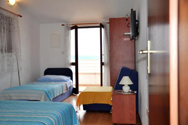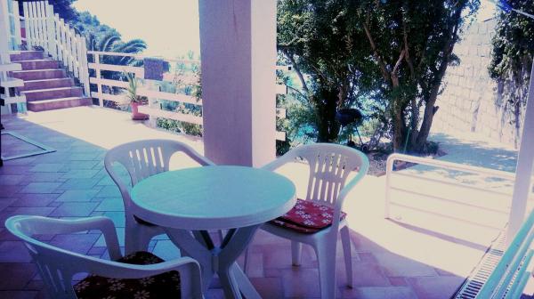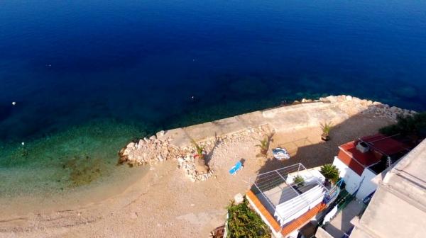 House with four apartments, located 10m from the sea. APP1(2), APP2(2+2), APP3(2+1), APP4(3+1). All apartments are equipped with: Air conditioning, satellite TV, WI-FI, parking space, sea view. Right below the house there is a beach to which you have direct access with stairs.