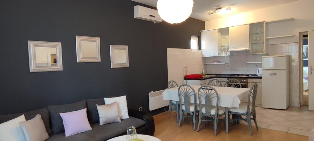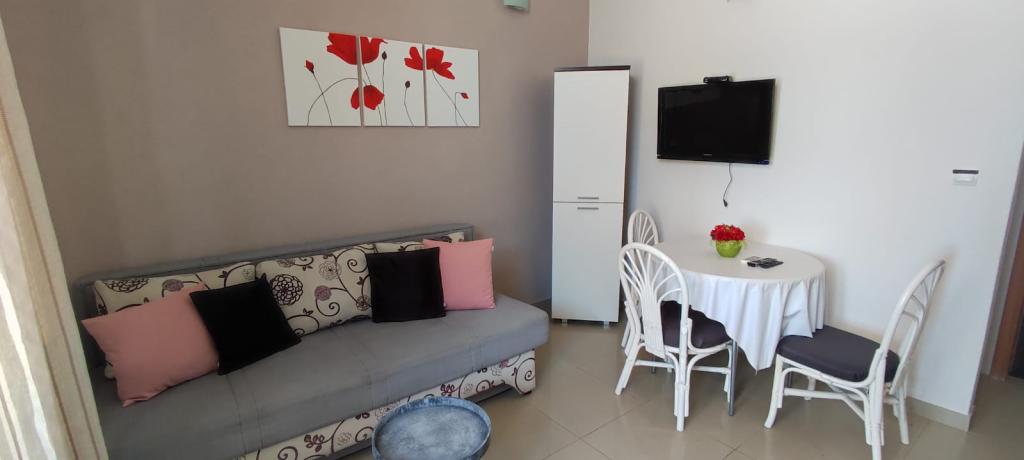 Residential tax is included in price.For all those looking for a real vacation, without the hustle and bustle, Drašnice is the ideal choice. A small, quiet, sometimes almost sleepy place, but on the other hand, everything you need is within easy reach. The sea is crystal clear, the sunsets are unreal - each different, each magical in its own way. Apartments Niko, the accommodation where we stayed for 10 days, completed the previously described experience. The apartments are located right on the beach, which brings a special charm, such as, for example, morning coffee with the song of the waves. They are neat, clean, decorated with a lot of attention and detail, or the love and care of the host to make the guest's stay comfortable. I was especially impressed by the shelves with books in the hallway, which guests can take and read during their vacation. The hostess is kind and always there when needed. I would like to take this opportunity to thank you once again for your helpfulness at the moment when I needed medical help. The whole experience of staying in Drašnice and this accommodation was excellent. The combination of natural beauty, a place where you can feel the soul of the Mediterranean, and the hospitality of the hosts made our vacation perfect.