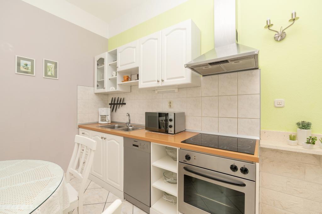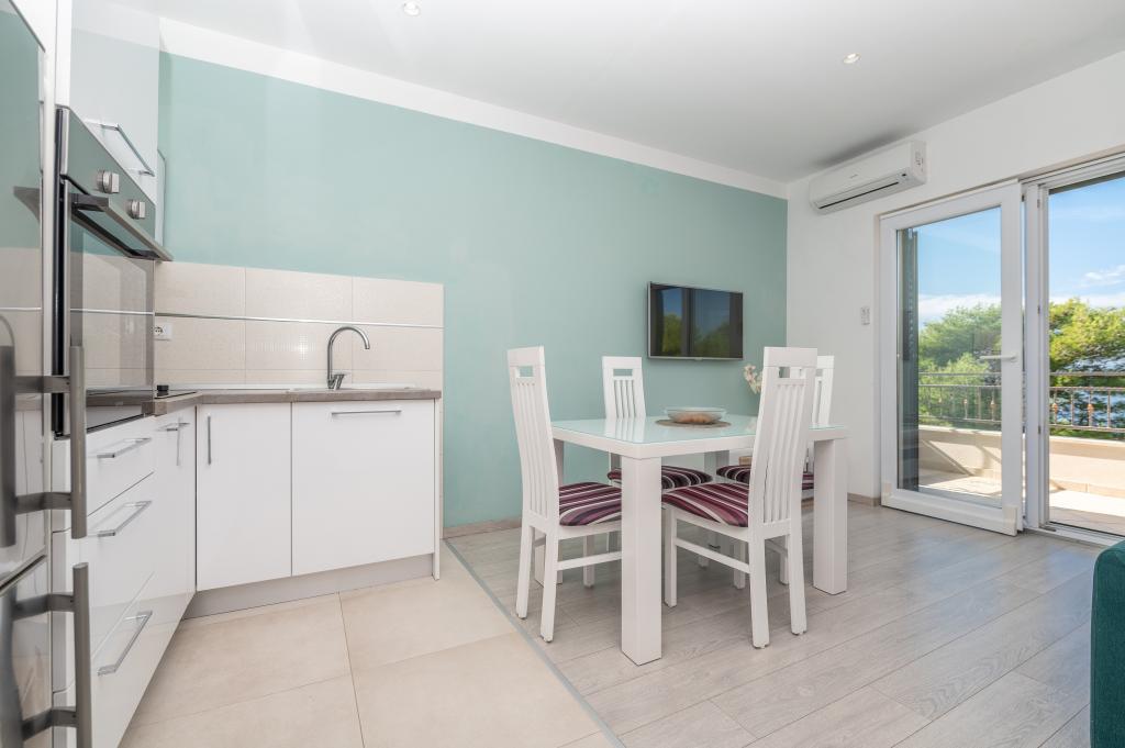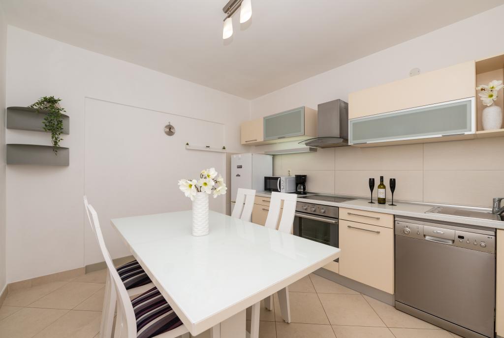 Drašnice, a small tourist town located ten kilometers south of Makarska, on the road to Dubrovnik, ideal for a family vacation. The house is located in a quiet environment 150 m from the sea. All apartments have private parking, air conditioning, TV, Wi-Fi, washing machine, dishwasher