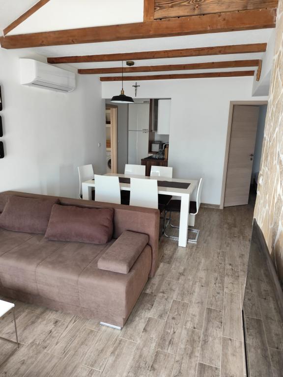 Beautiful, natural and peaceful place. House with jacuzzi for rent on Drvenik Mali, approximately 150 meters from the sea. The house consists of two bedrooms, a living room with kitchen and dining room and a bathroom. The most beautiful part of the house is the terrace with an open fireplace-stone barbecue. Drvenik Mali is surrounded by the clear waters of the Adriatic Sea, an island near the town of Trogir and the town of Split. It is connected by a small ferry that sails four times a day during the season. Drvenik Mali is a very peaceful island, so much peace, unique natural beauty and exceptionally clear sea. This is the perfect holiday destination "far from the city crowds" and is a real challenge for all modern Robinsons. If you are looking for lush Mediterranean vegetation, an original atmosphere and an authentic island atmosphere, Drvenik Mali is the right choice for you.