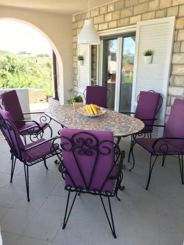 Our modern and comfortable house provides a real family feeling. It can accommodate up to 6 people and is located in a quiet part of the island only 250 meters from the sea. There is a kitchen and outdoor grill for gourmets and proximity to pristine beaches. The ground floor is approximately 100 m² and consists of the following rooms: living room with a flat-screen TV and a sofa bed. Plus there is a fitted kitchen with oven, stove and dining area, as well as the adjoining bathroom with a shower and sink. There is also a spacious terrace overlooking the sea, a large table and chairs for a pleasant lunch with the family, and also has a garden. On the first floor is about 100 m² consists of three bedrooms with sea view, one with a double bed, all three rooms have TV, fan and balcony. There is also a bathroom with a bathtub. The balconies are deck chairs and stunning sea views. Furthermore, there is a travel bed for small children in the house for the holidays.
