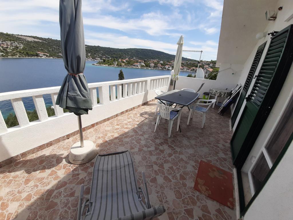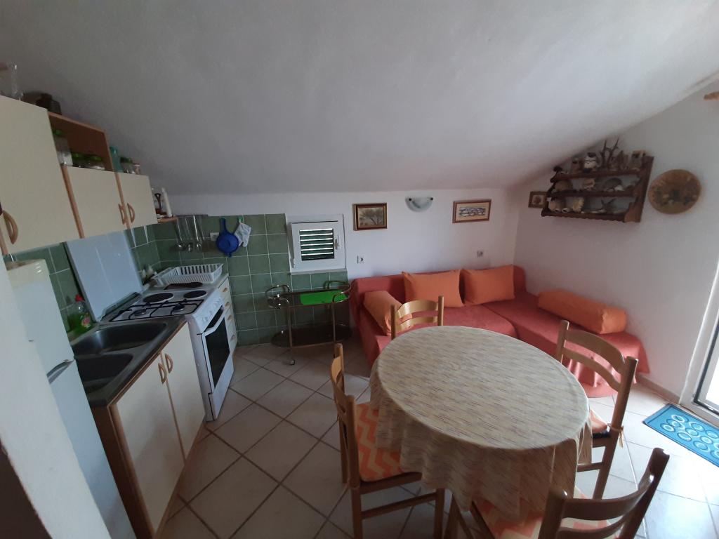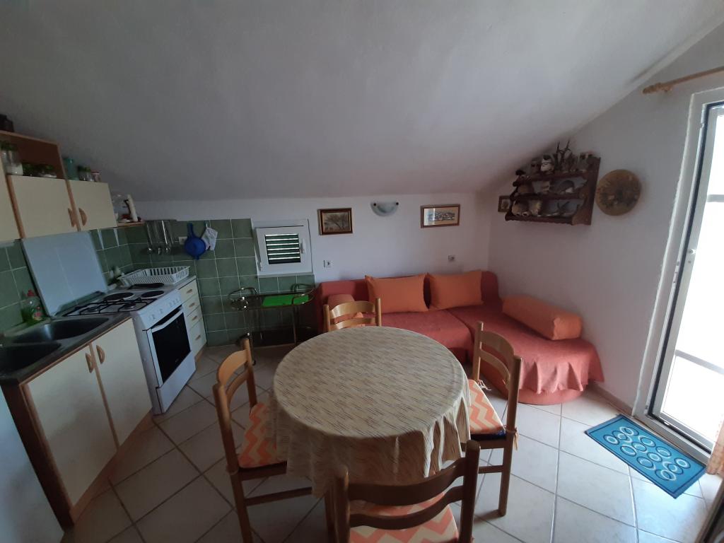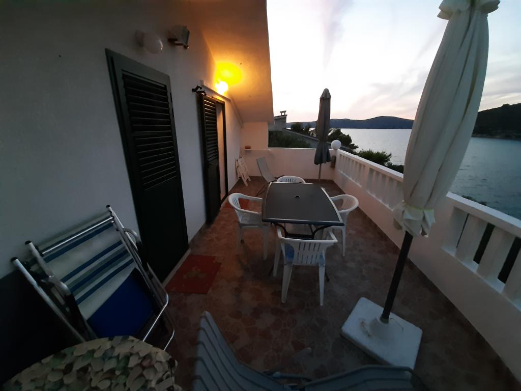 The apartment is on the first floor with a separate entrance in a quiet environment 20 m from the sea. It has a large 20 m2 terrace overlooking the sea, two bedrooms, a bathroom and a kitchen with an air-condition. In the yard there is a fireplace that guests can use. It is ideally located on the island with a separate beach (concrete). Ideal for people who want to get away from city crowds and swim all day long.