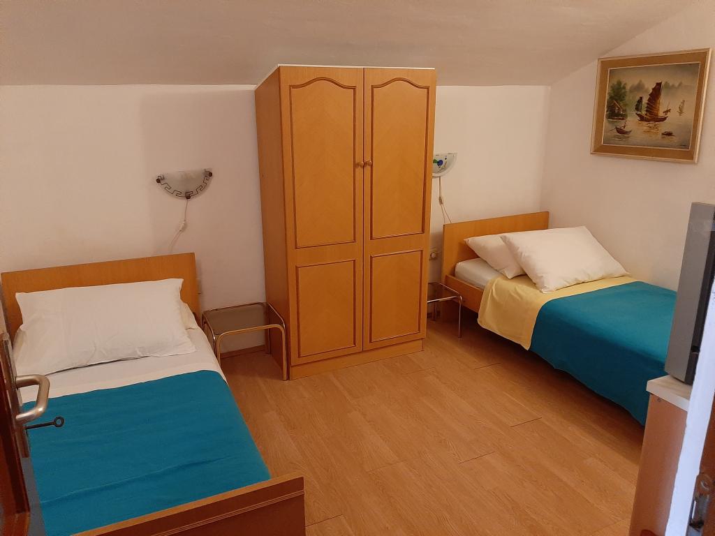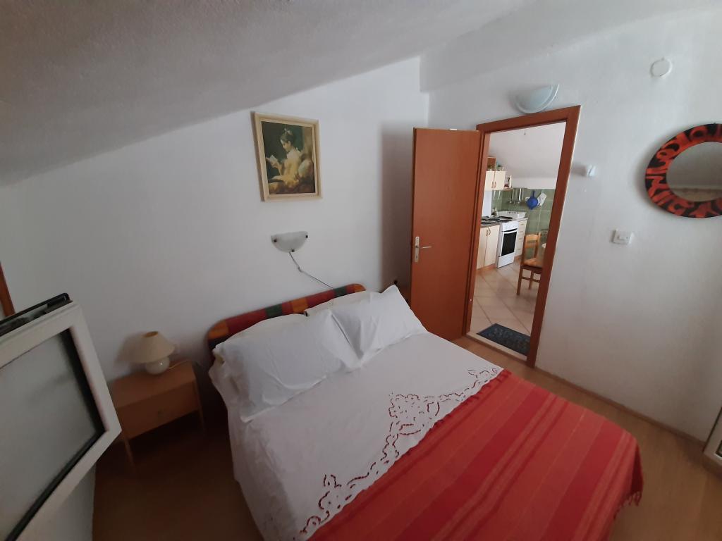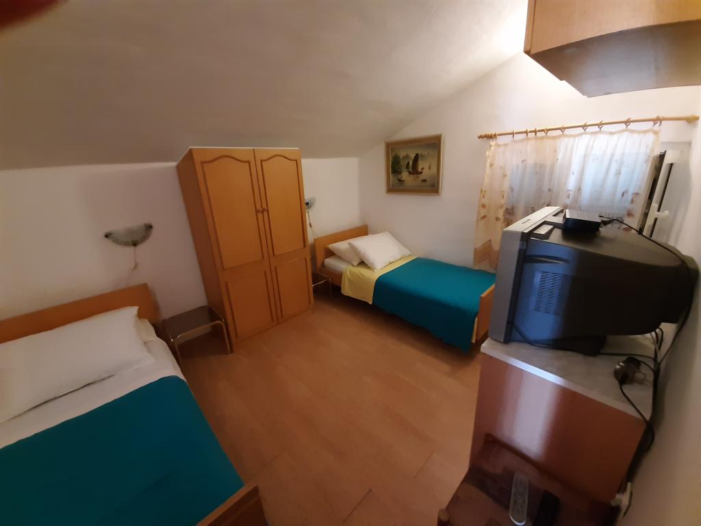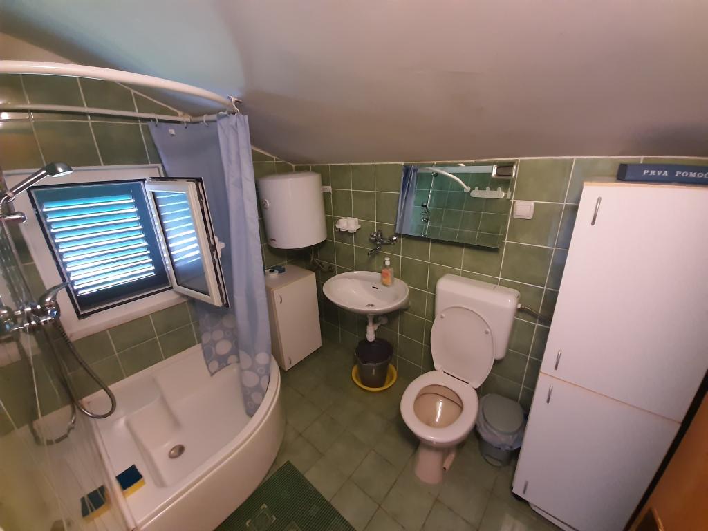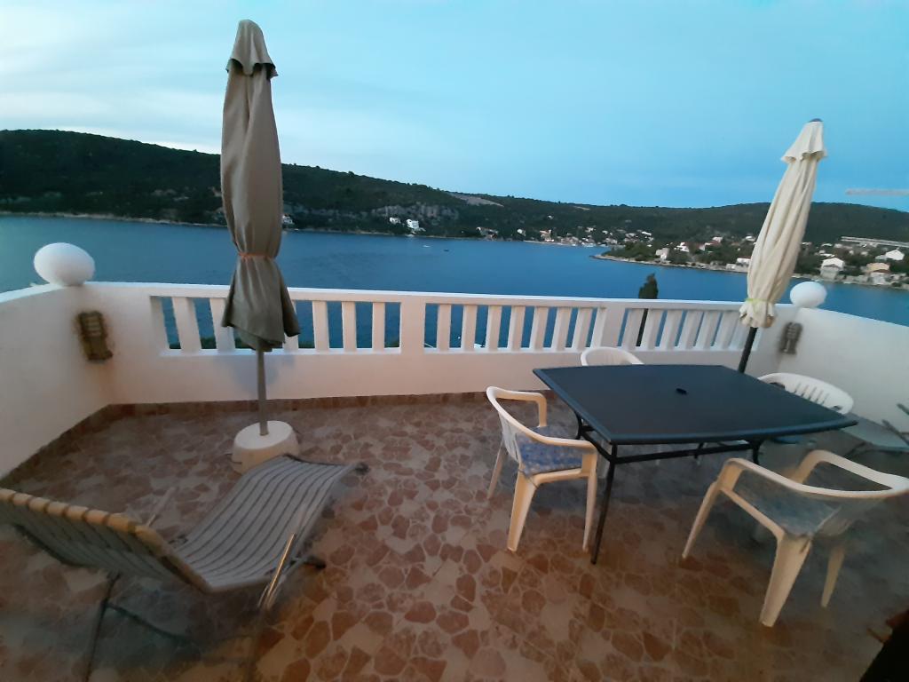 The apartment is on the first floor with a separate entrance in a quiet environment 20 m from the sea. It has a large 20 m2 terrace overlooking the sea, two bedrooms, a bathroom and a kitchen with an air-condition. In the yard there is a fireplace that guests can use. It is ideally located on the island with a separate beach (concrete). Ideal for people who want to get away from city crowds and swim all day long.
