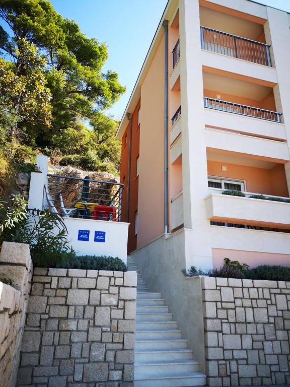 Villa Stina is a new modern building in an exceptional location next to the sea. All 9 apartments have a balcony overlooking the sea and the beach, leading to the stairs just outside the house. Drvenik is a small fishing village, offering a peaceful holiday. Just a few minutes walk away from the first store, restaurant and cafe. The property is air conditioned and parking is under video surveillance.