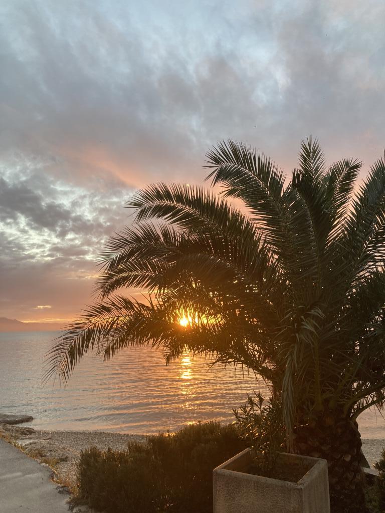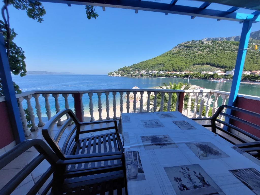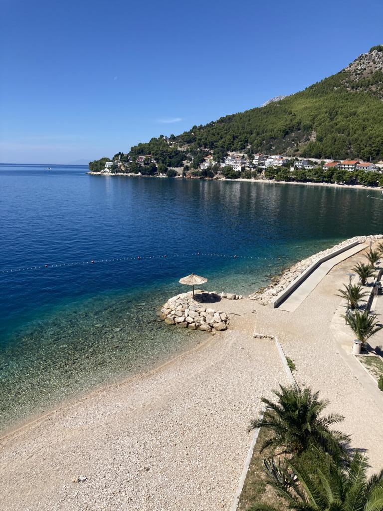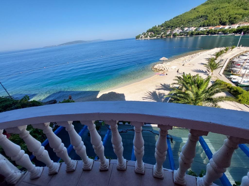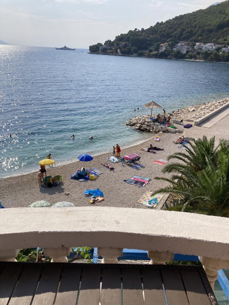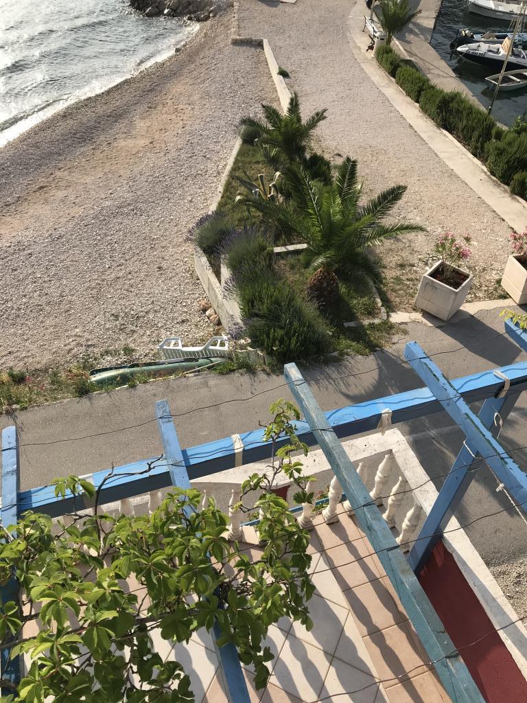 Apartment first row to the sea, beach in front of the apartment, view of the sea and the town