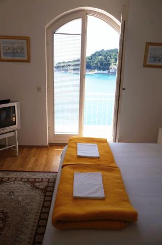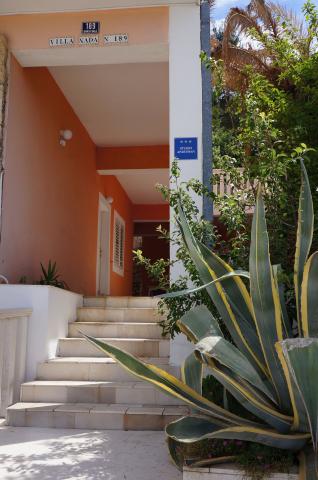 The facility is located in Drvenik close to the dock the ferry to Hvar and sandy beaches. Spacious villa with apartments and rooms offers a pleasant and peaceful holiday with a beautiful beach and surroundings. All our guests can use the spacious sunny terrace in the level of the ground floor, as well as the back garden and atrium. Location of the property is perfect if you want to nearby islands and places. Villa has double and triple rooms and apartments for 3, 4 and 5 persons. All rooms are equipped with air conditioning, Internet, TV, refrigerator. The rooms have a private bathroom in the hallway next to the room. Upon arrival, guests receive your key to the bedroom, bathroom and front door. Bed linen and towels are included in the price. With prior notice, guests can reserve a parking space. Guests rooms it is possible to use a kitchen that is located on the first floor. Our apartments offer complete privacy and can accommodate 3-5 people. They have a fully equipped kitchenette, bathroom, air conditioning, TV, wifi.