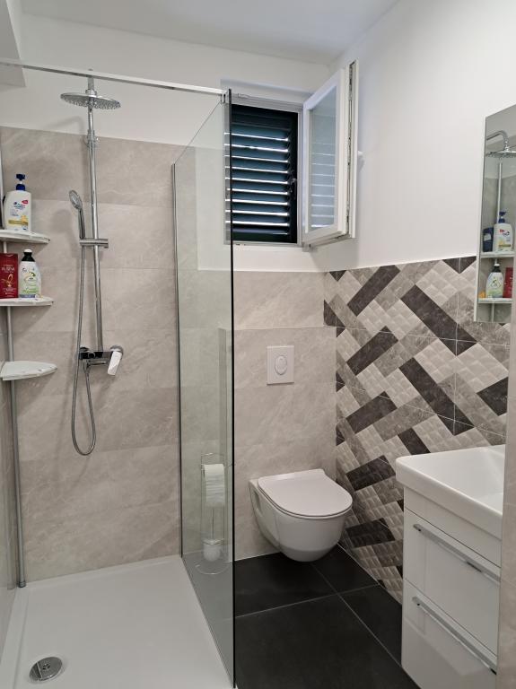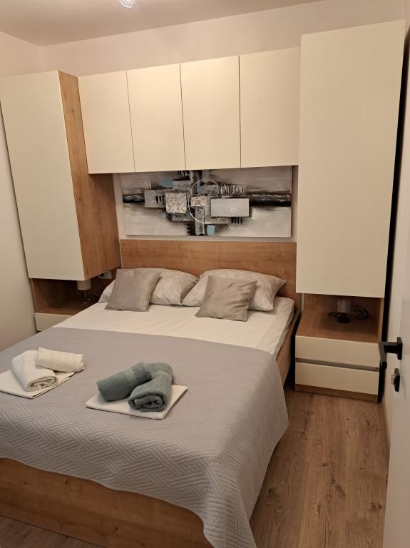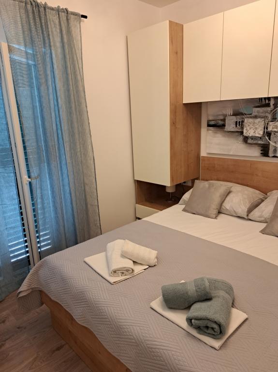 The apartments are located only 10 meters from the sea with a wonderful view of the sea, the beach and the whole town. All apartments are equipped with a TV. The apartments consist of two bedrooms, two bathrooms and a large space with a kitchen, dining room and living room.