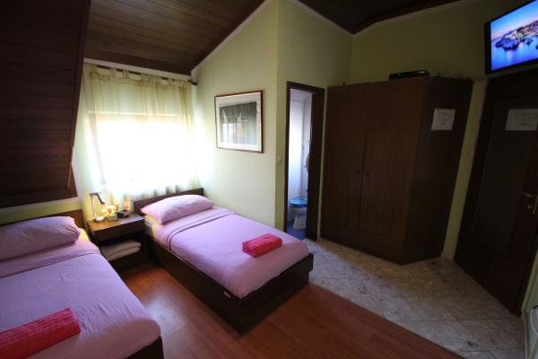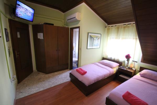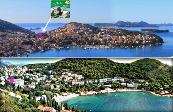 Villa Micika is the best solution for a pleasant vacation in Dubrovnik. Open throughout the year, during Christmas, Easter holidays and holidays, Villa is suitable for business people as well as for tourists. The villa is located in the quiet center of Dubrovnik called Lapad, surrounded by palm trees and other Mediterranean vegetation. It is only 300 m away from the main beach and 10 m from tennis courts. It has 8 rooms categorized with 3 stars. Rooms have a capacity of 12-15m2 and have 8 double beds and allow total accommodation for 16 persons. The property is separate and is located on two floors. All rooms have a view of beautiful green areas and are equipped with bathroom, shower, WC, TV-SAT, AIR-CON and all rooms have a central heating system. Within the property there is a communal terrace and its own off-road car park