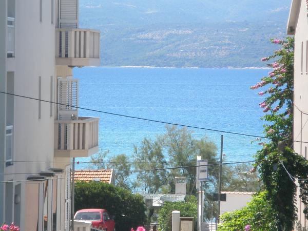 The apartment is suitable for 6-8 persons (6 2). Can be two families. Apartment is near the sandy beach, shops, restaurants, exchange office, coffee shops, 2 km from Omis and content that nudu city. The apartment has 2 terraces (sea view and mountain) and shared barbecue.