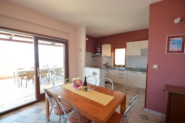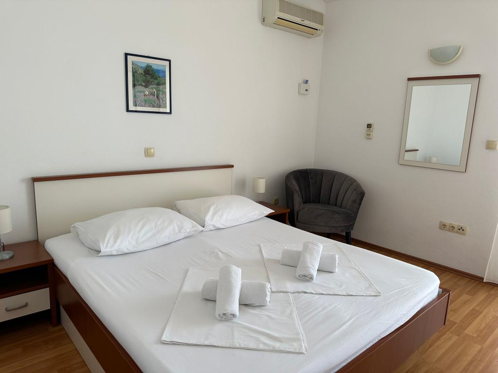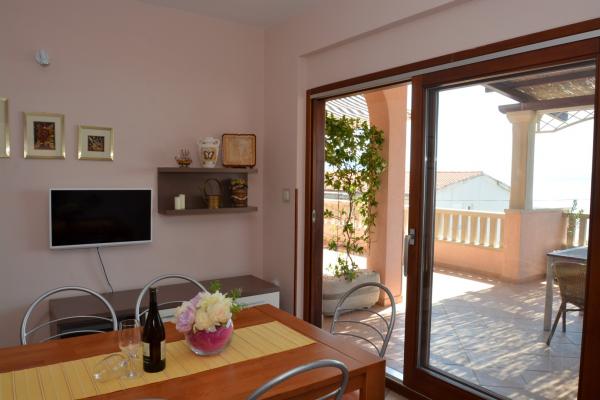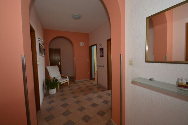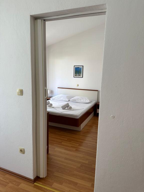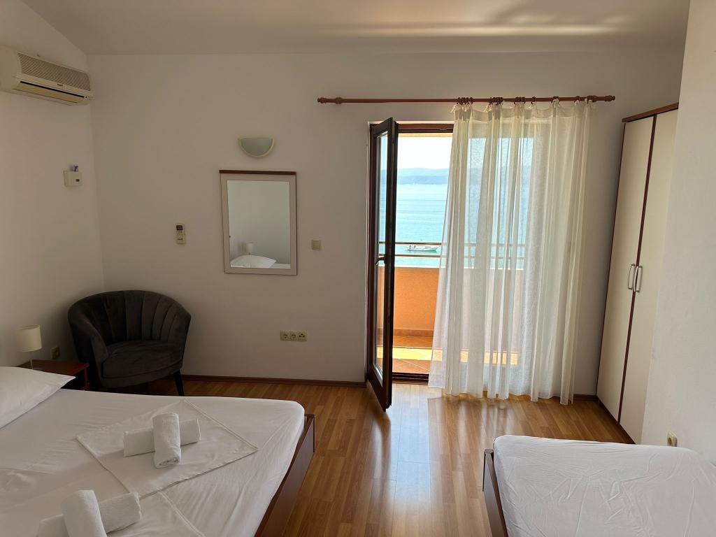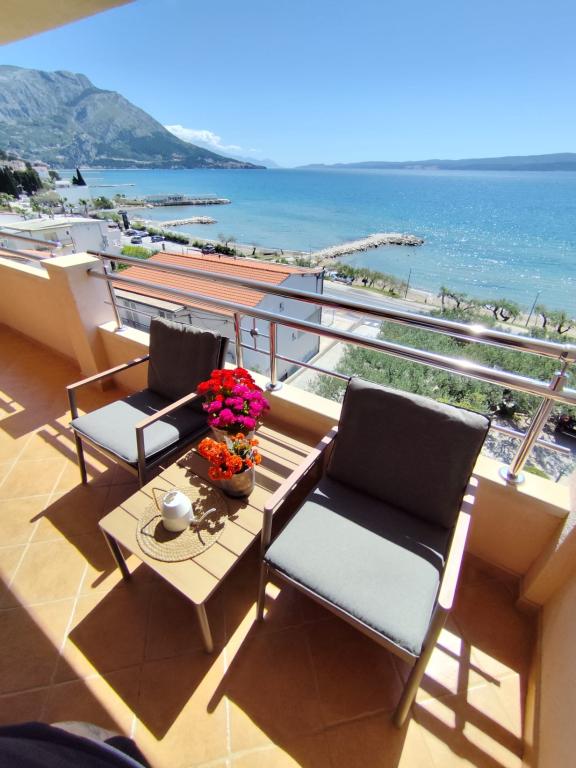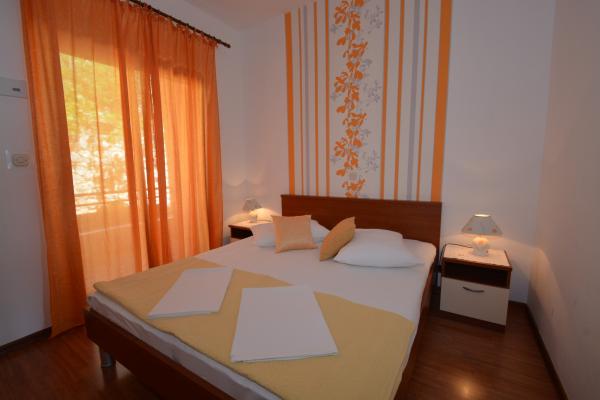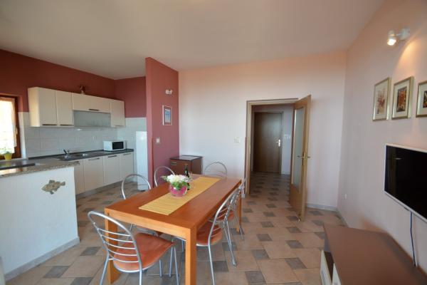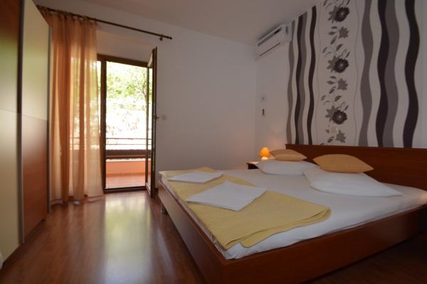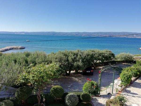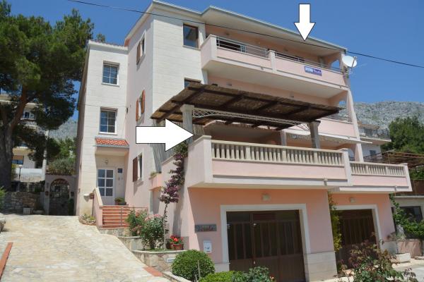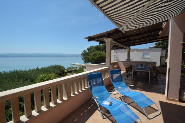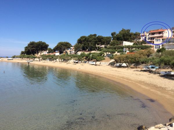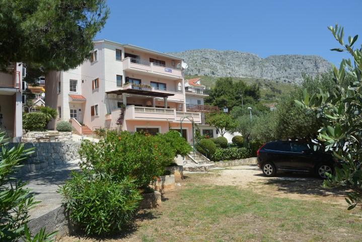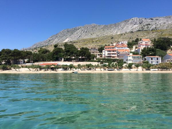 We offer two spacious and well-equipped apartments with sea views, 50 m from the sandy beach. The apartments are designed for 8 people - they are ideal for a group of friends or families with children. Accommodation offers free parking, WI-fi, yard, barbecue area. Apartment A1 consists of four double bedrooms, each with its own bathroom, large terrace and kitchen. In the kitchen there is a microwave, dishwasher, refrigerator, stove. Apartment A2 consists of three rooms; one room consists of two double beds for four people, the other is a double room, and the third consists of a double bed and a single bed. Each room has a bathroom. The apartment has a large kitchen and terrace overlooking the sea. Each apartment has one TV in the seating area. Accommodation is located 2 km from the town of Omis, and only 50 m from the nearest restaurant. The bus station is right next to the house, which provides good transport links with Split, which is 20 km away.