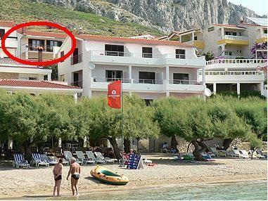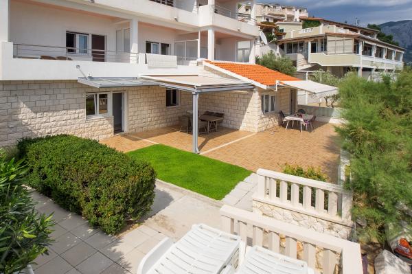 We were in the apartment for 4 people, in the second house. We liked our spacious apartment and very nice hosts. The beach is really perfect, and the house is super close to it - with its private way to the beach. Nearby city of Omis is also really nice. Recommend for families with children especially.