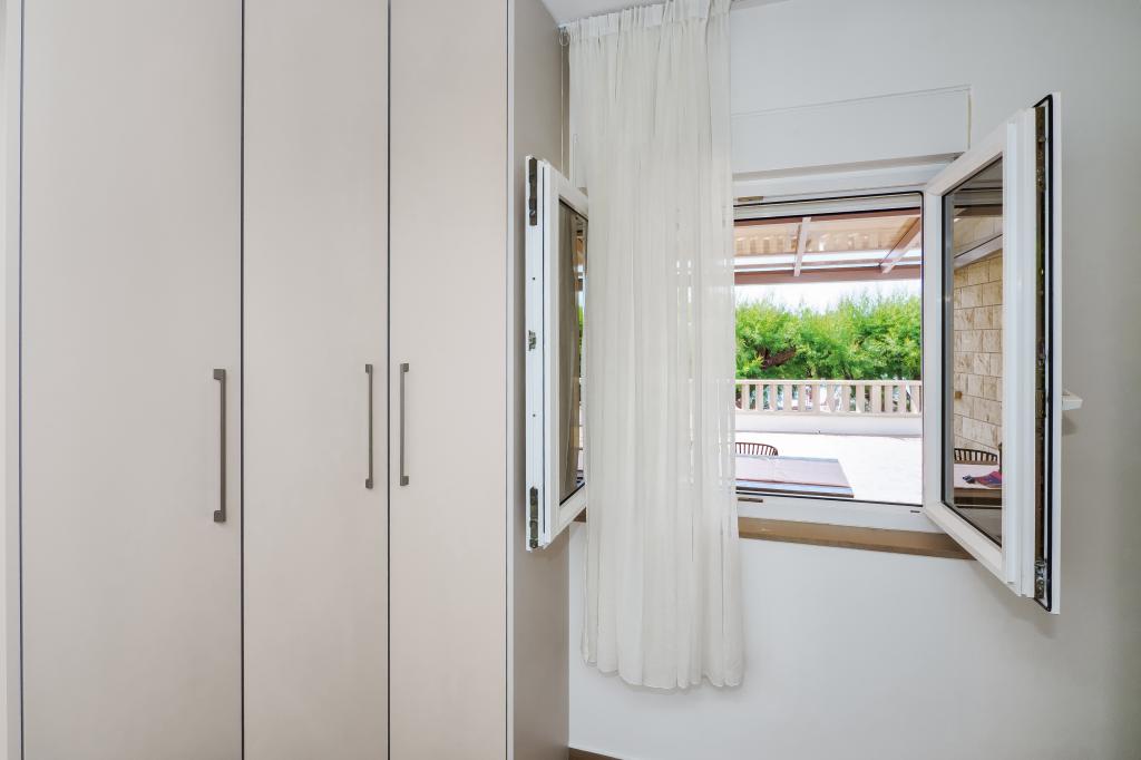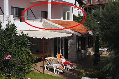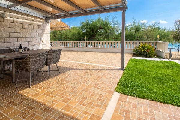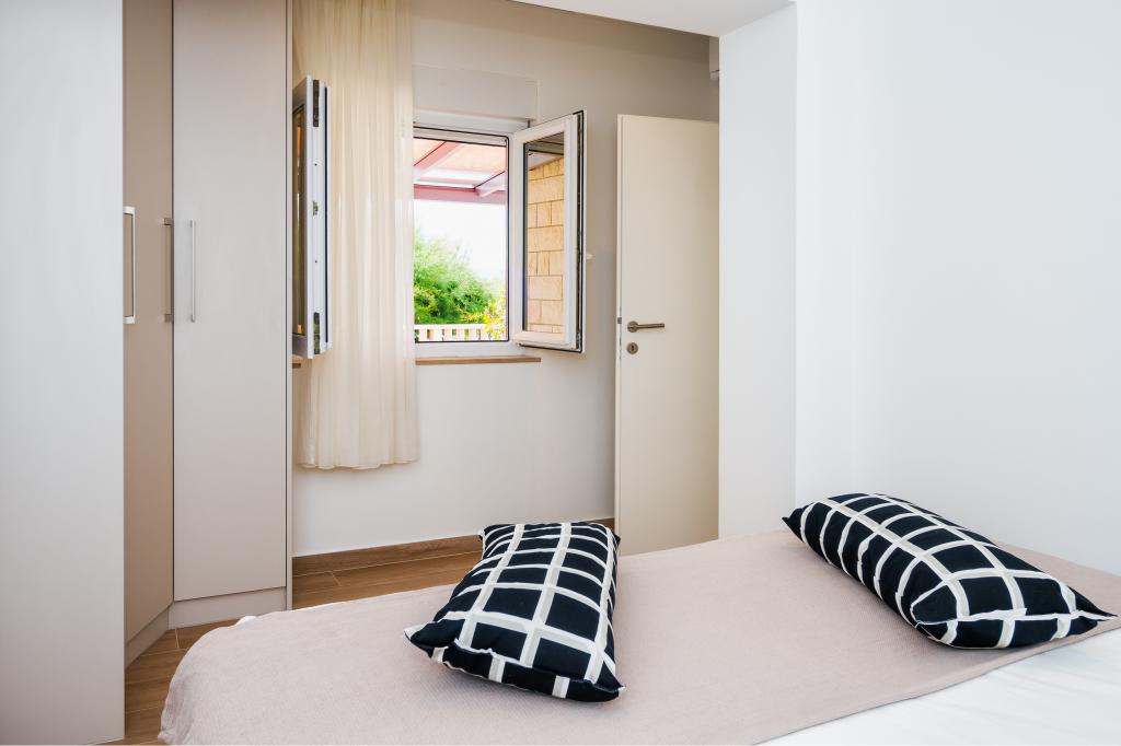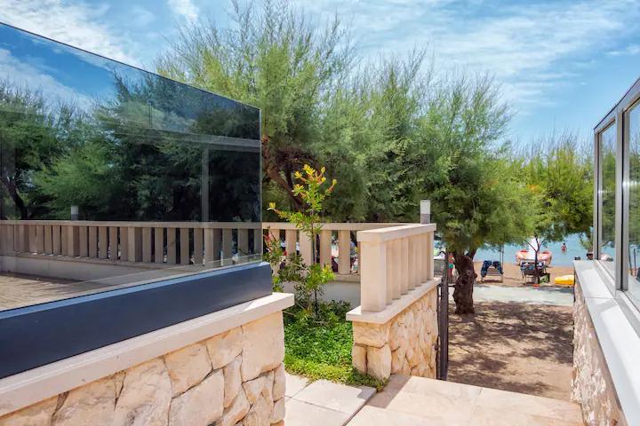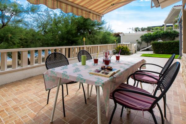 At Apartments Bruna we offer you accommodation in a house just a few meters from the sea and the sandy beach. It is also important to note that we offer 2 apartments on the ground floor of the house right on the beach - ideal for the elderly and families with small children. In the house, just a few steps behind it (of course, below the main road), on the second floor (from whose balcony you have an open view of the sea and islands), we offer you accommodation in newly renovated apartments. Spend your vacation in fully equipped apartments, located first row to the sea, in the shade of tamarisks on a beautiful sandy beach!