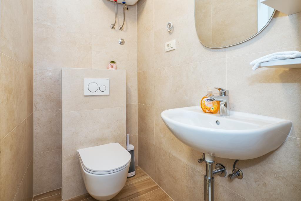 There can be only one rating and opinion, a very good, fantastic apartment in Duce. The apartment is located on the ground floor literally on the beach, only a few steps from the terrace and the beach. Comfortable conditions, two bedrooms, kitchen, dining room and bathroom. The owners are polite, discreet and helpful. Location literally on the border between Duce and Omis. Close to shops, shopping center, bakery, pharmacy and gas station, all shopping on foot. Sandy beach, gentle entry into the water, good for children.