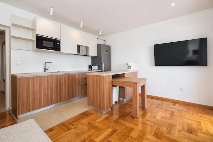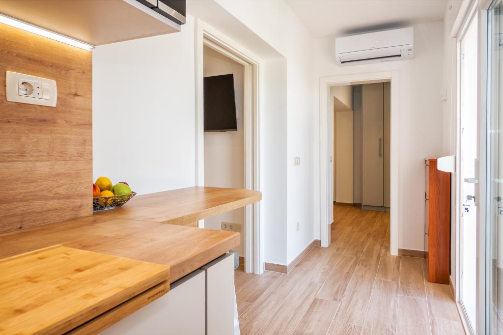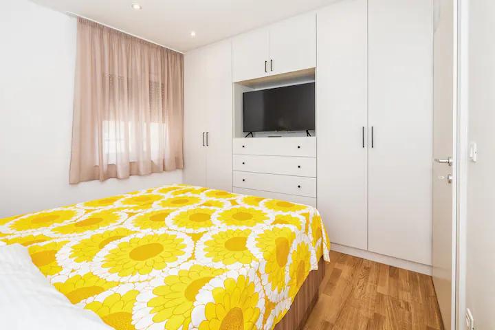 I recommend these apartments. It is a beautiful place with mountains right next to the coast. Hiking trails and beautiful views. In the vicinity of excellent bars and pizzerias, beautiful sandy beach, for children as made, accommodation right on the beach. Super clean apartments. We would love to come back here sometime.