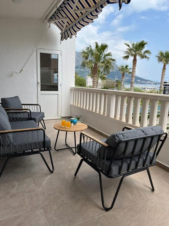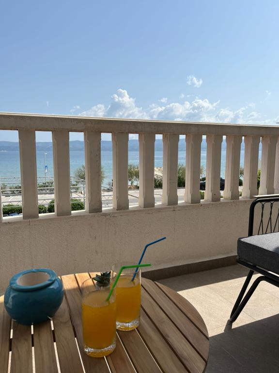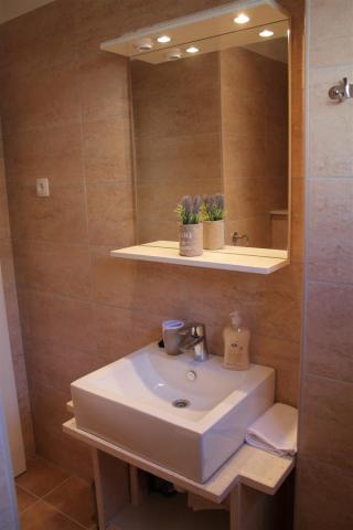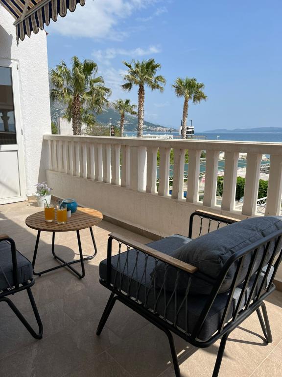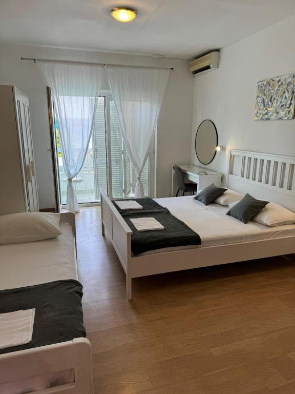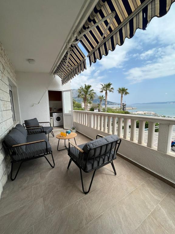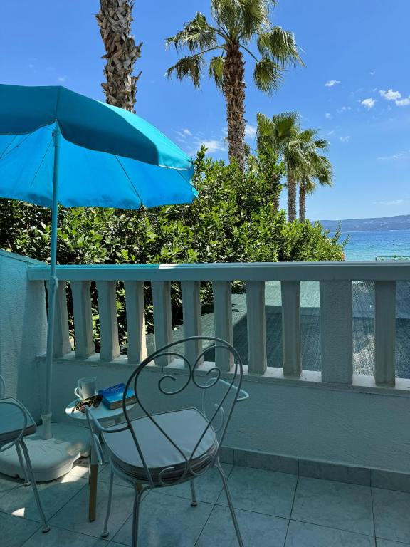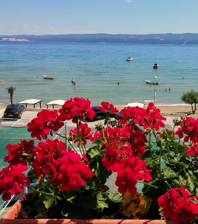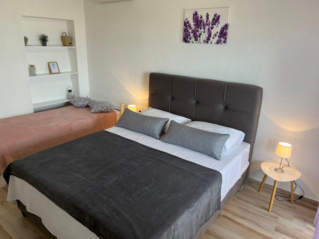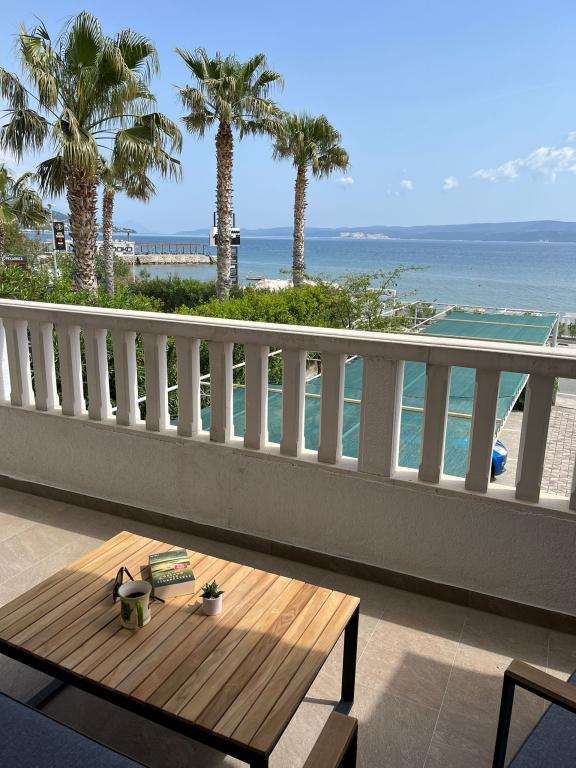 The family house in Duće, which is located first row to the sea, 2 km from the center of Omiš and 25 km from the center of Split, offers the following accommodation units: two newly renovated apartments on the first floor with terraces facing the sea: Lavanda (2+1) and Maslina (3+ 1), two studio apartments Capuccino (2+1) on the first floor with a balcony facing the garden and Lila (2+1) on the ground floor with a terrace facing the sea. We also offer our studio apartment More for 4 people on the first floor with a terrace facing the garden. Right next to the sea apartment is our Family apartment (3+2), which has a balcony facing the garden and a balcony facing the sea. The apartments are in an ideal location right next to a sandy beach that is suitable for small children. They have their own parking space and free wifi. Nearby there is a shop, a bus station, several restaurants and a pizzeria.