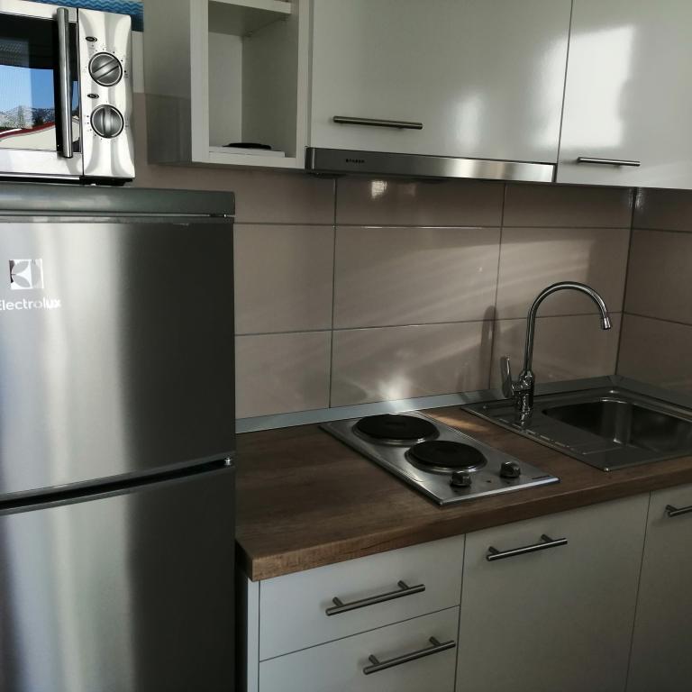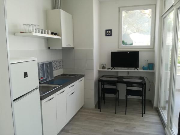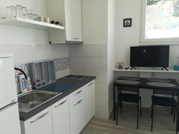 Very nice and friendly hosts, renovated studio - with a kitchen, bathroom and a beautiful flower terrace making evenings and morning breakfasts pleasant. The equipment of the apartment is new and functional. From the terrace there is direct access to the beaches, approx. 20 m. There is a shop and several restaurants nearby. Parking under the house. Quiet neighborhood, 30 minutes to the center of Omis on foot. We are very happy to stay in this place