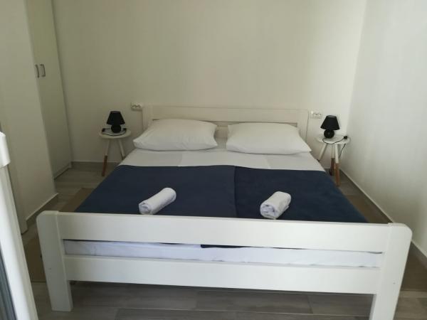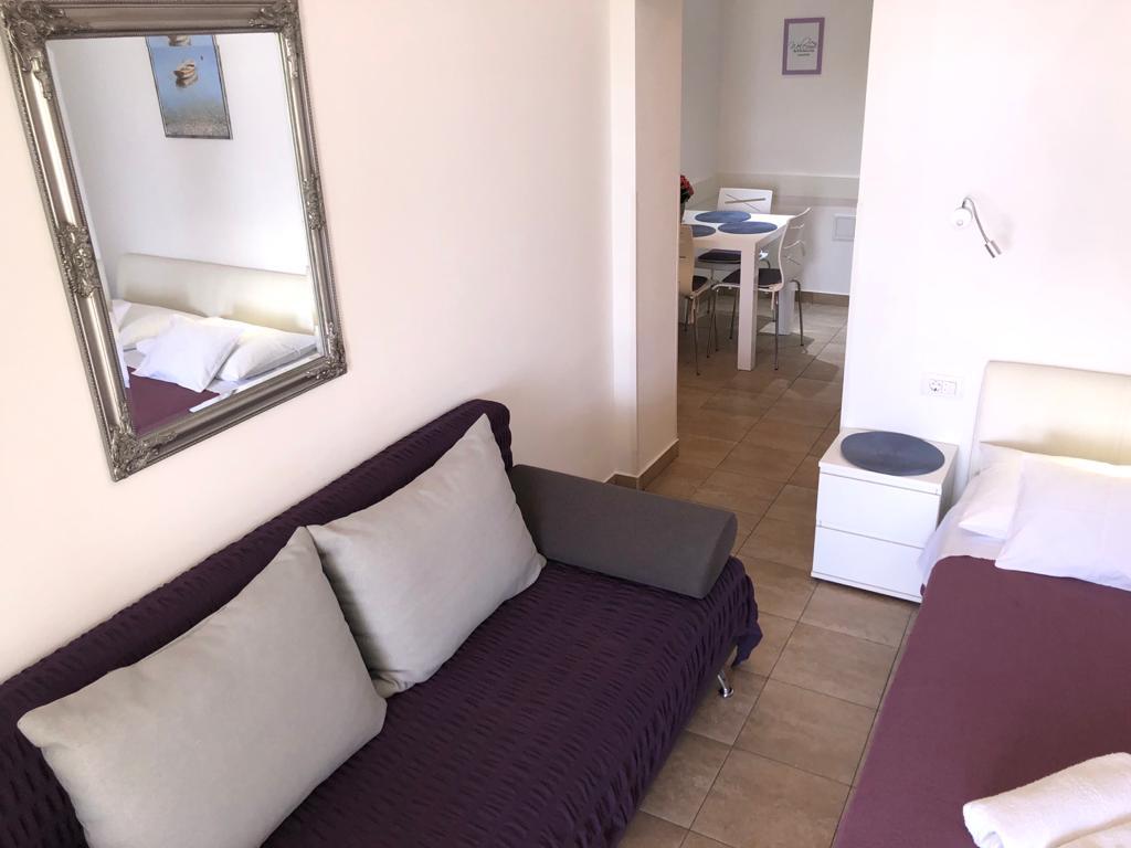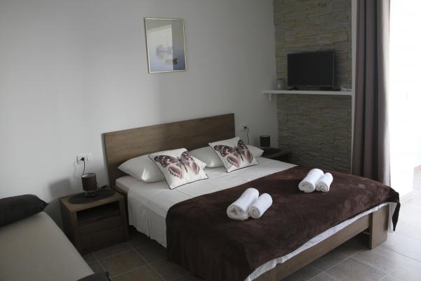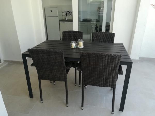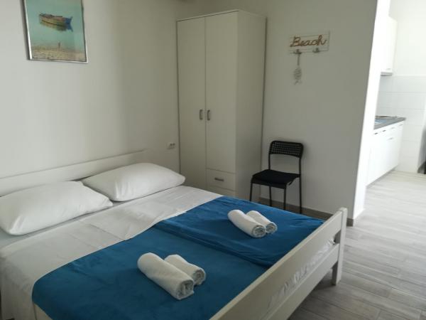 A great place for families and more. Building with a homely atmosphere, great owners. Clean, cozy parking available. The apartment itself is very fresh, well-equipped and provides great comfort for 4 people. Super large terrace. Our apartment did not have a sea view and we chose it on purpose because it was very quiet and intimate and the sea and nice sandy beaches are just across the street (very close to the lanes). I highly recommend and thank Maria for a nice stay.