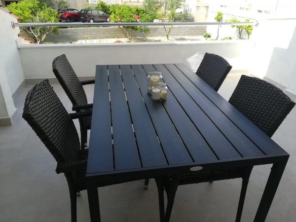 4 times in 3 years for 3 weeks each time, what more can we say, just great. Very pleasant hosts, open to all questions. Apartment is tip-top, public transport is cheap and the bus stop is 20m away. Split is 30 minutes by bus. Beach with sand is really nice. Price/performance ratio couldn't be better in this location.