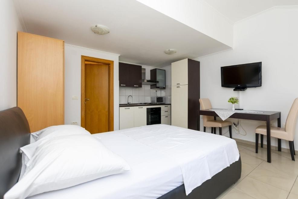 We offer six newly decorated apartments of various sizes. Each apartment is equipped with a full kitchen and all necessary appliances and utensils, a TV with satellite channels, and air conditioning. All apartments have a terrace with a view of the sea. Near our apartment there is a beautiful sandy beach with many facilities such as cafes, restaurants. For your car parking space.