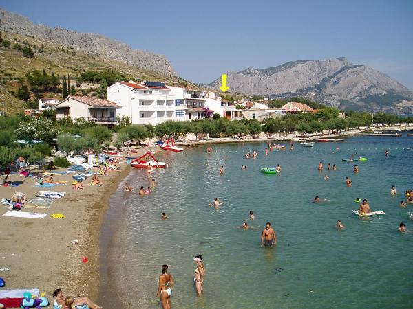 Residential tax is included in price.- Micro-wave oven, children bed and garage on request Well-known sites in the neighbourhood: • ancient pirate city of Omiš, at the mouth of the river Cetina, famous for its Klapa Festival; • over 1700 years old but very well preserved Diocletian’s Palace (on UNESCO’s World Heritage List ); • archaeological remains of the old Salonae ; • historic nucleus of Trogir, a small city founded by the old Greeks, which is also on the World Heritage List of famous sites.. Sports and recreation: • Water sports: water skiing, ‘banana’ skiing, jet ski, ‘pedaline’, rent-a-boats • Adventure program: rafting on the nearby river Cetina, canoeing, canoe safari, diving, free climbing, paintball etc. • One-day trips to the islands (fish-picnics)