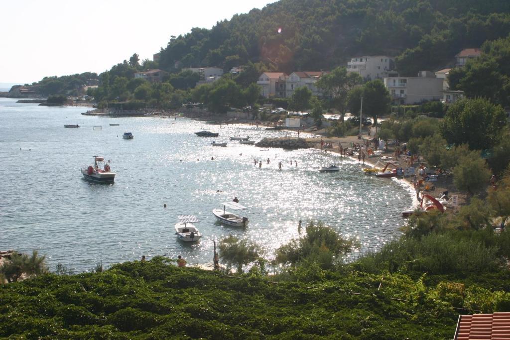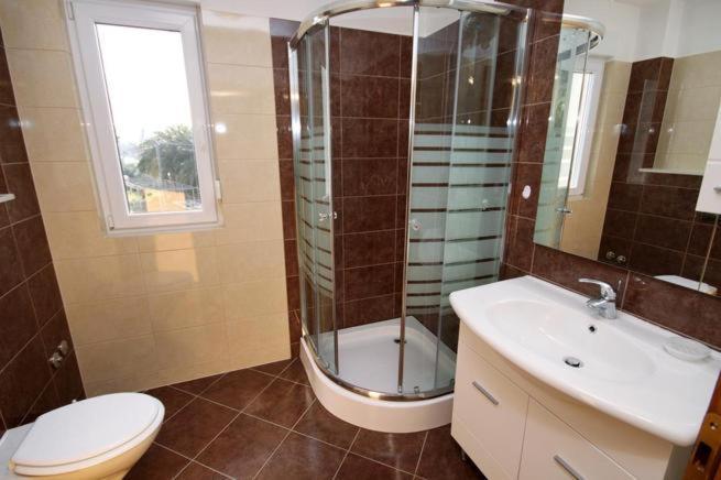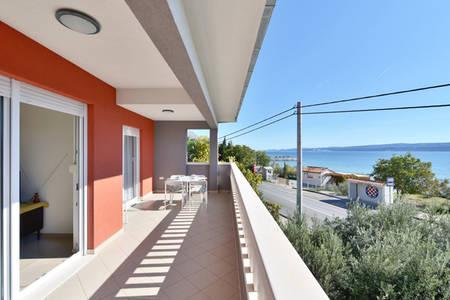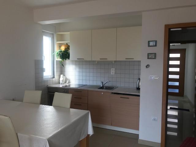 The house has two apartments of 75 square meters. Each apartment has two bedrooms, one room has two beds and the other three beds. In the spacious kitchen with living room there is the possibility of accommodation for two people on the couch. In the hallway there is a bathroom with toilet and toilet. Both apartments have a spacious balcony overlooking the sea. There are car garages on the ground floor. It is necessary to cross the road to reach the beach which is 150 meters away from the house. At a short distance there is a choice between several types of beaches and the depth of the sea. Suitable for children. On the beach, in addition to swimming and sunbathing, you can choose from a variety of additional forms of entertainment. The distance to the bread kiosk is 50 meters, shops 200 meters, and in the vicinity there are several types of restaurants.