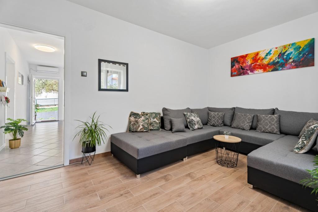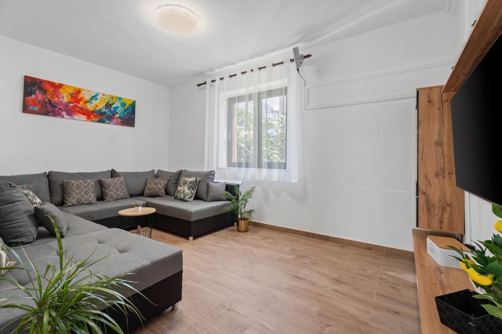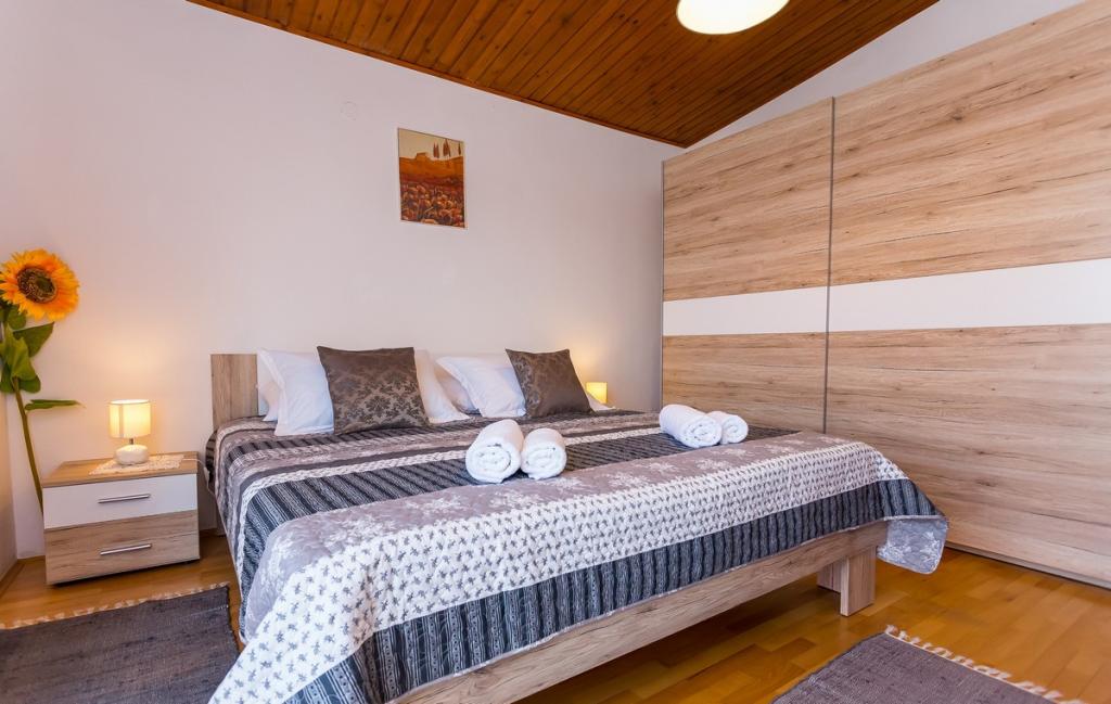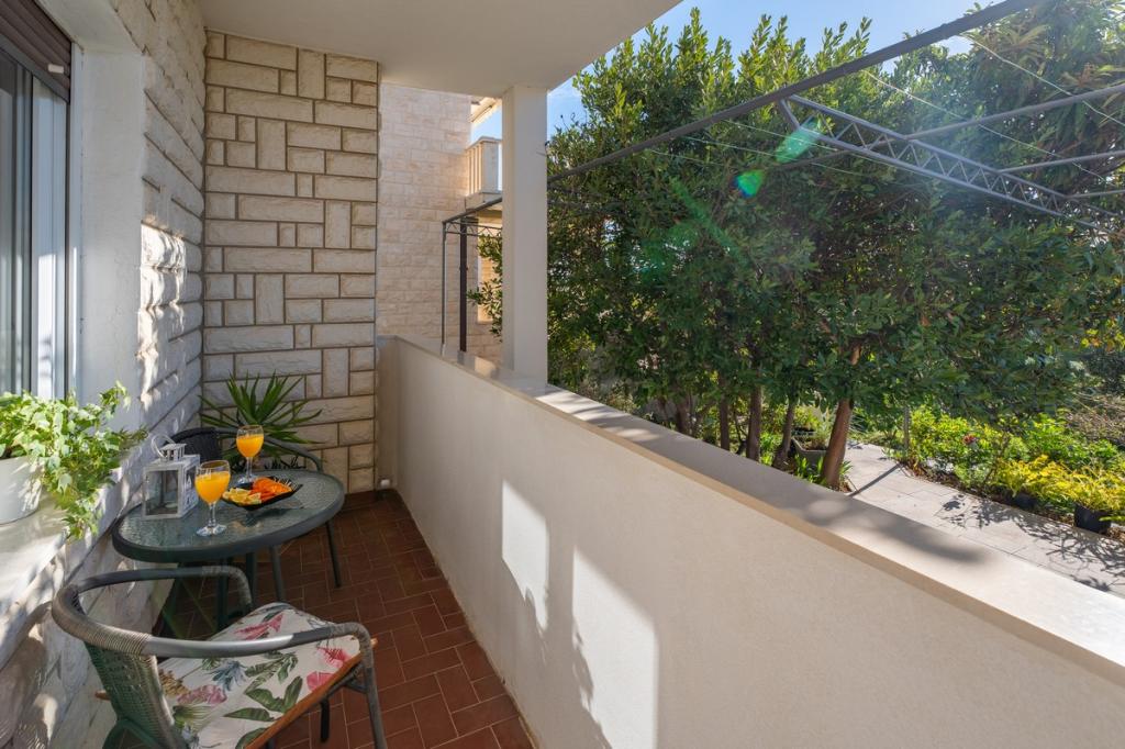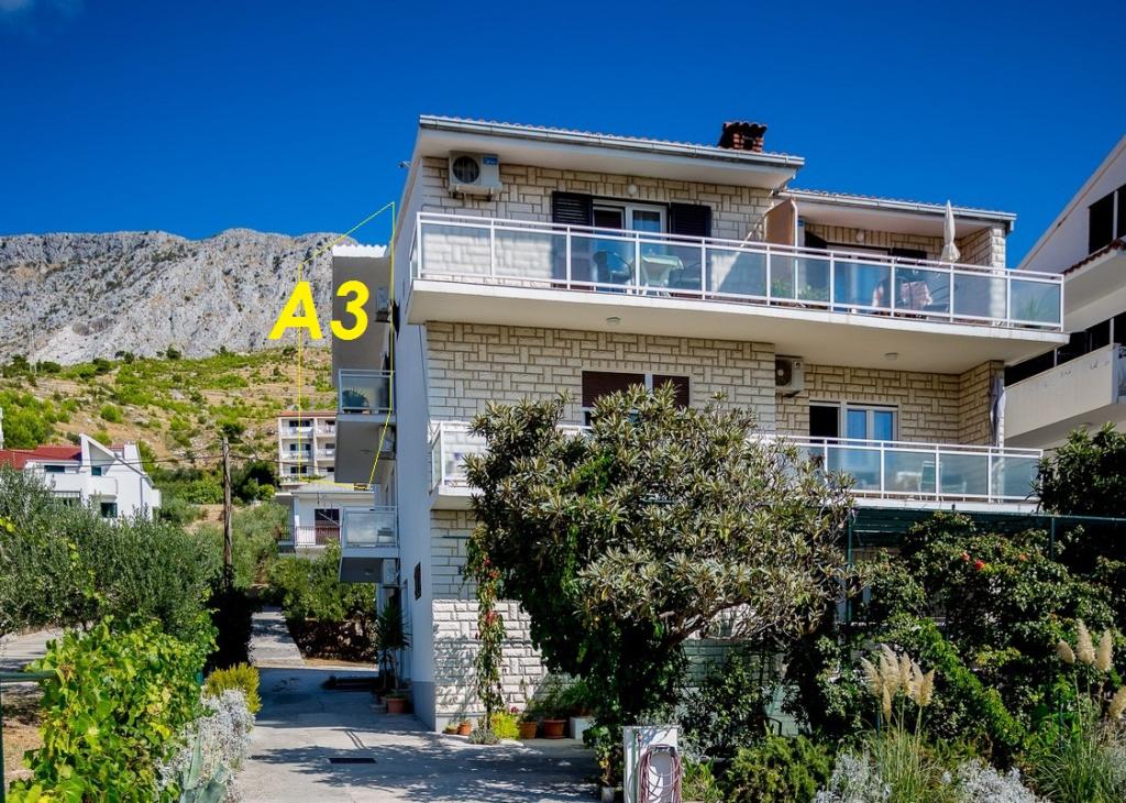 Apartments Miroslav Vojnović are located in the very center of the tourist town of Duće as part of the Split-Omis Riviera. A family house with a spacious garden and a beautiful sea view. A beautiful sandy beach is ideal for a family vacation with children. The beach is only 50 m from the house. Guests have at their disposal five comfortable and equipped apartments that provide a feeling of home while on vacation. Arrival is possible any day of the week. The apartments are available from 10 am on the day of arrival. This allows guests to stay longer, and guests can adjust their travel plan to their needs. The large apartment A5 for 4+2 people with a private terrace is located on the ground floor of the house. The other comfortable apartments A1, A2, A3 & A4 for 2 people are located on the second floor of the house and are all equipped with air conditioning. We also offer the possibility of combining smaller apartments depending on the needs of the guest. Close to larger city centers (Split 20 km, Omiš 3 km).