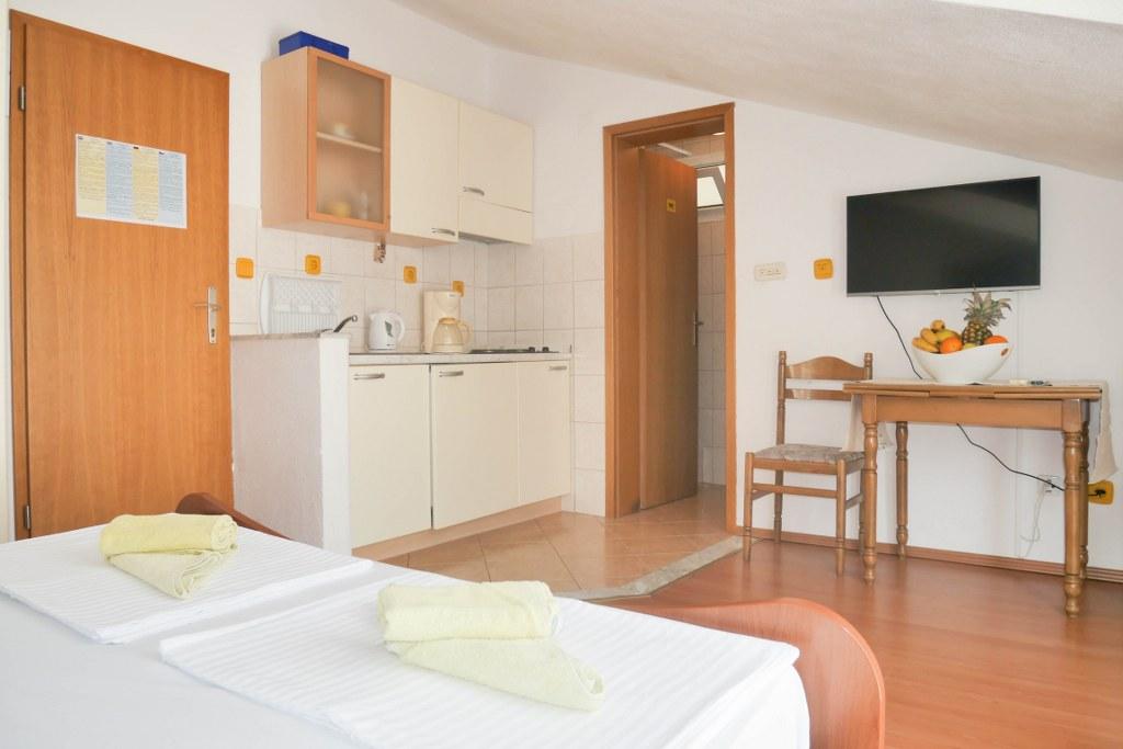 Sandy Beach Apartments are located 3 km from the town of Omis, known for its rich pirate history, beautiful beaches and crystal clear sea. We offer 4 apartments equipped with kitchen, air conditioning, WiFi, satellite TV, balcony, barbecue and free parking. The apartments are located only 20 meters from the beautiful sandy beach. Also nearby are restaurants, bars, market, exchange office, bakery ... We are at the service of our guests 24/7. At the request of guests, we prepare traditional dishes under the baking lid. Pets are allowed at no extra cost. Welcome!